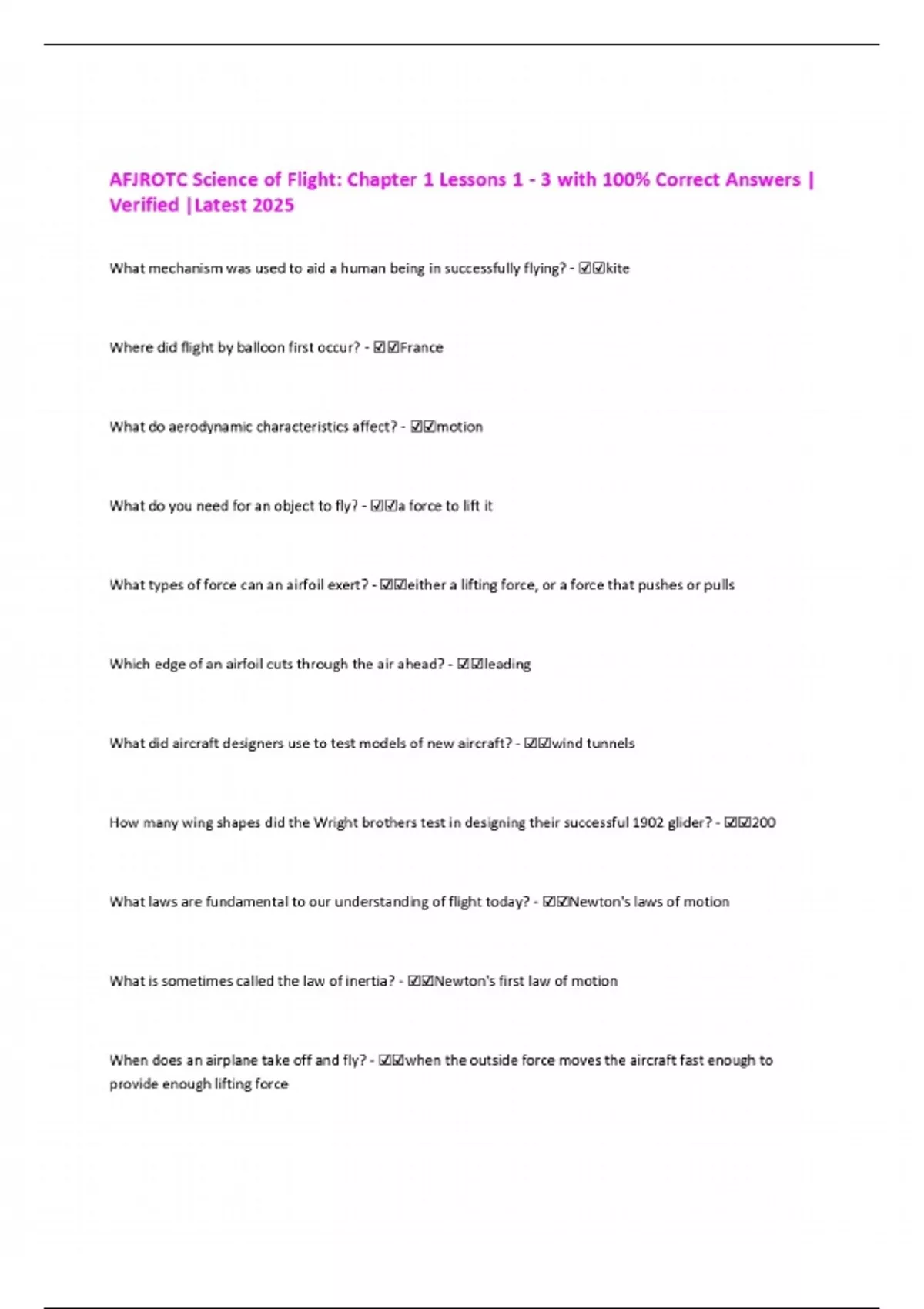 AFJROTC Science of Flight: Chapter 1 Lessons 1 - 3 with 100% Correct Answers | Verified |Latest 2025