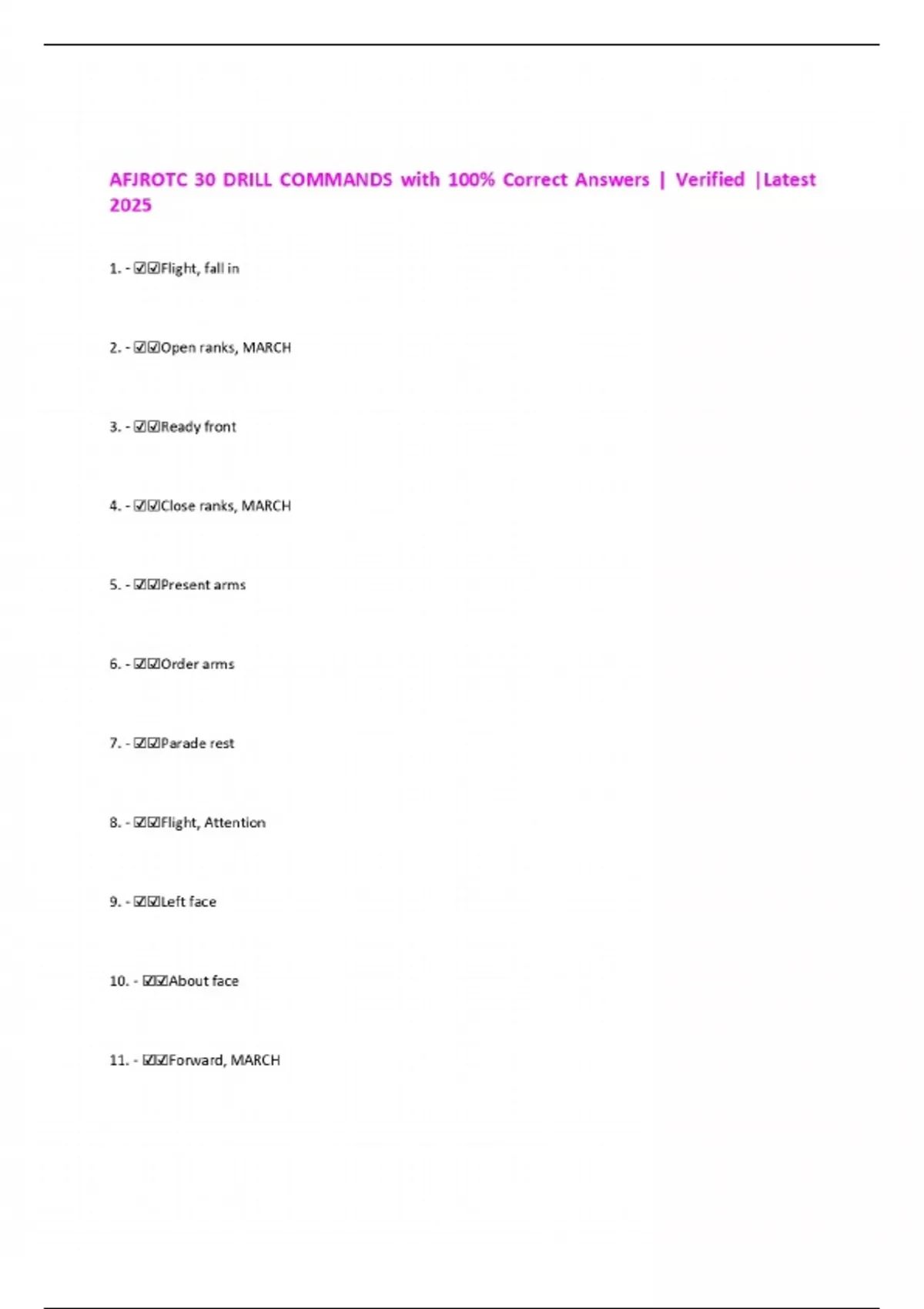 AFJROTC 30 DRILL COMMANDS with 100% Correct Answers | Verified |Latest 2025