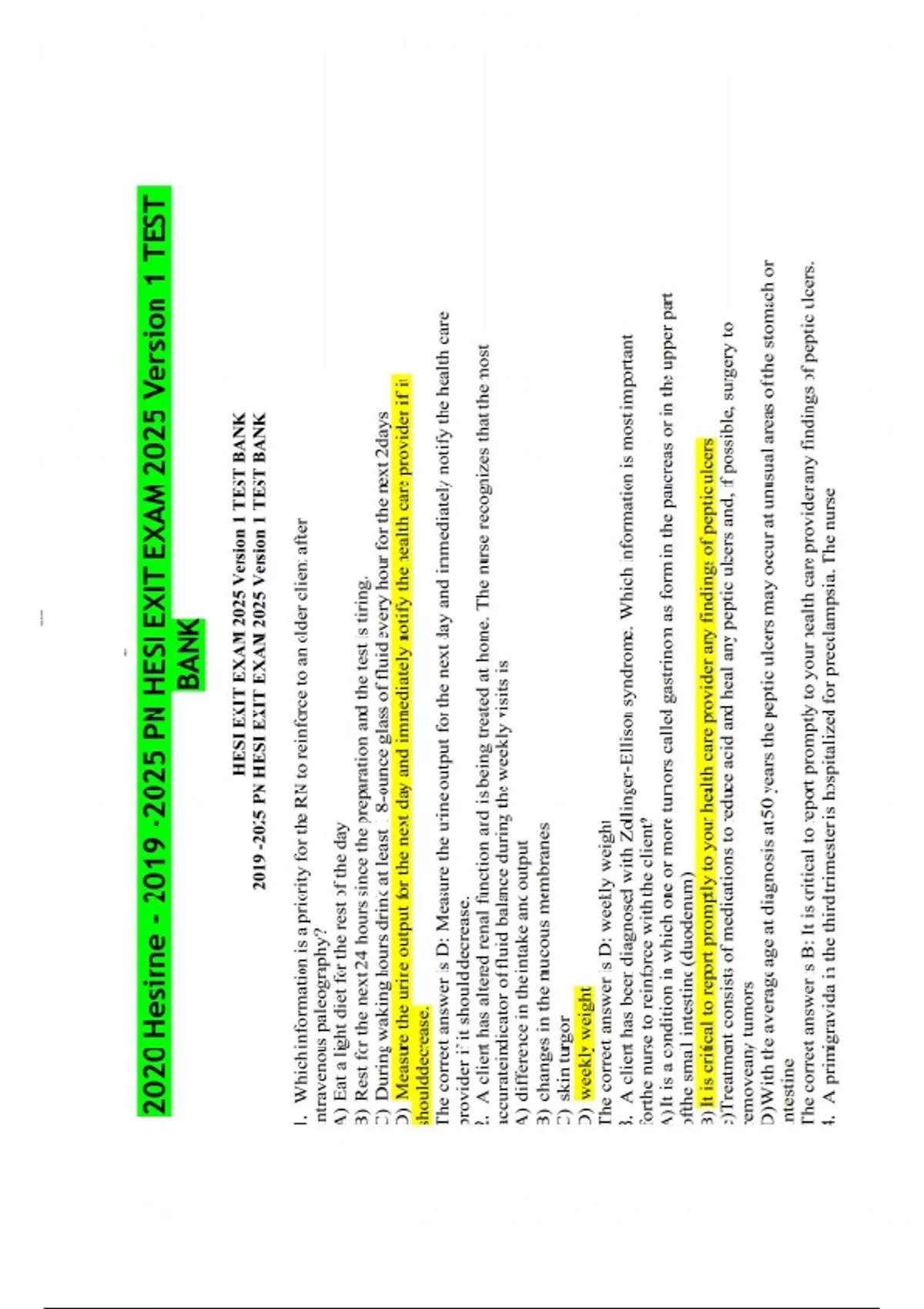 2020 Hesirne - PN HESI EXIT EXAM 2025 Version 1 TEST BANK