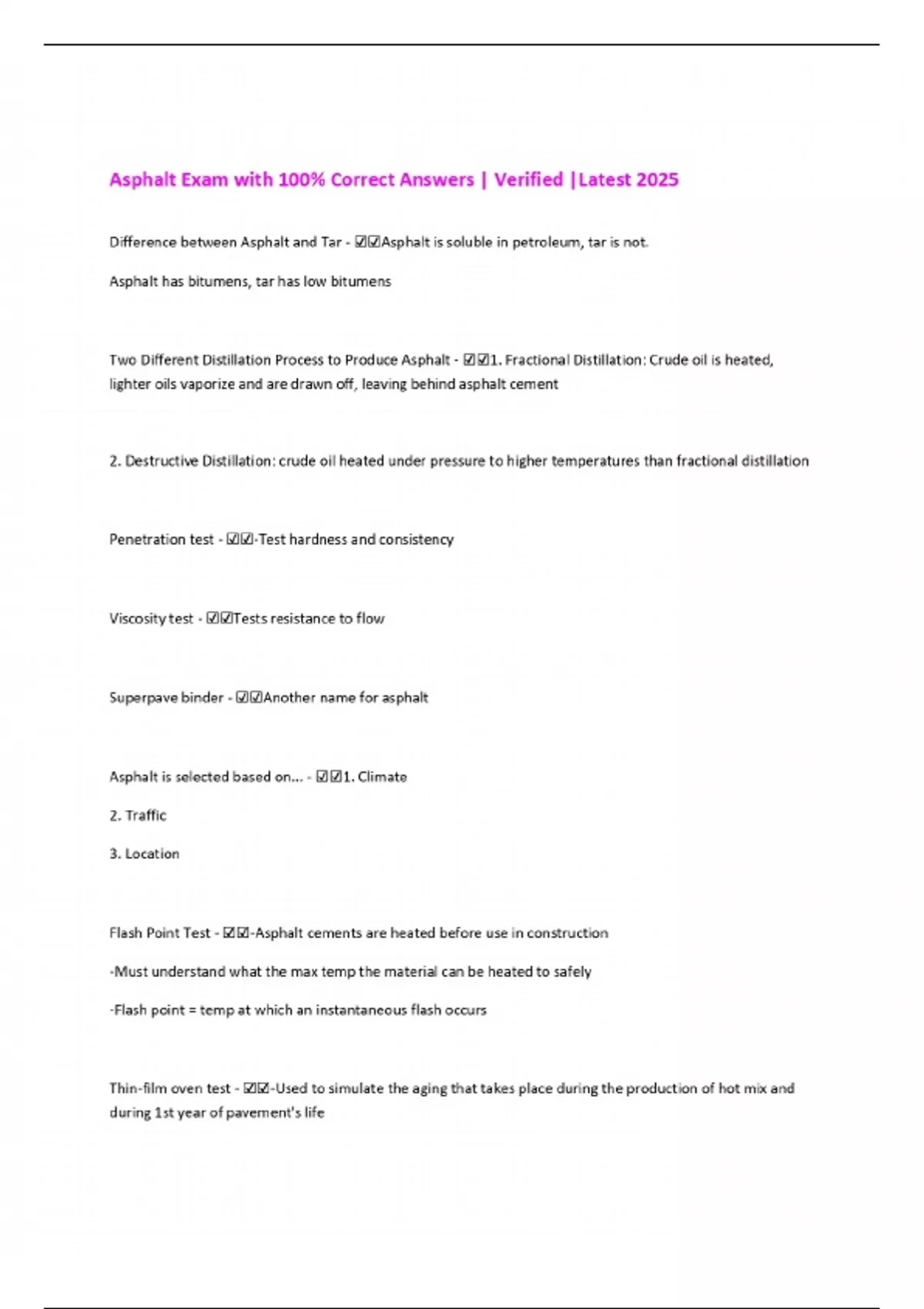 Asphalt Exam with 100% Correct Answers | Verified |Latest 2025