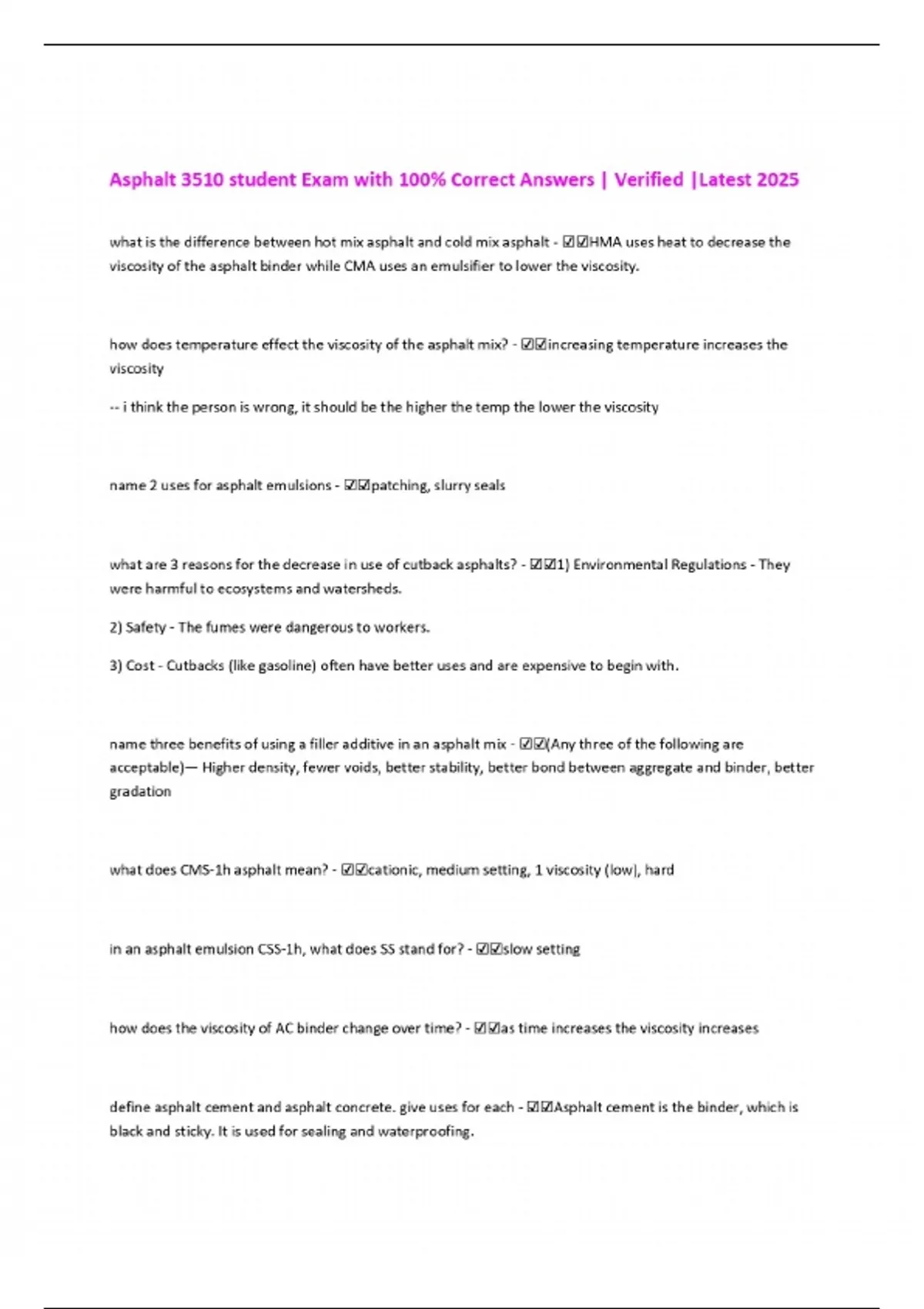 Asphalt 3510 student Exam with 100% Correct Answers | Verified |Latest 2025