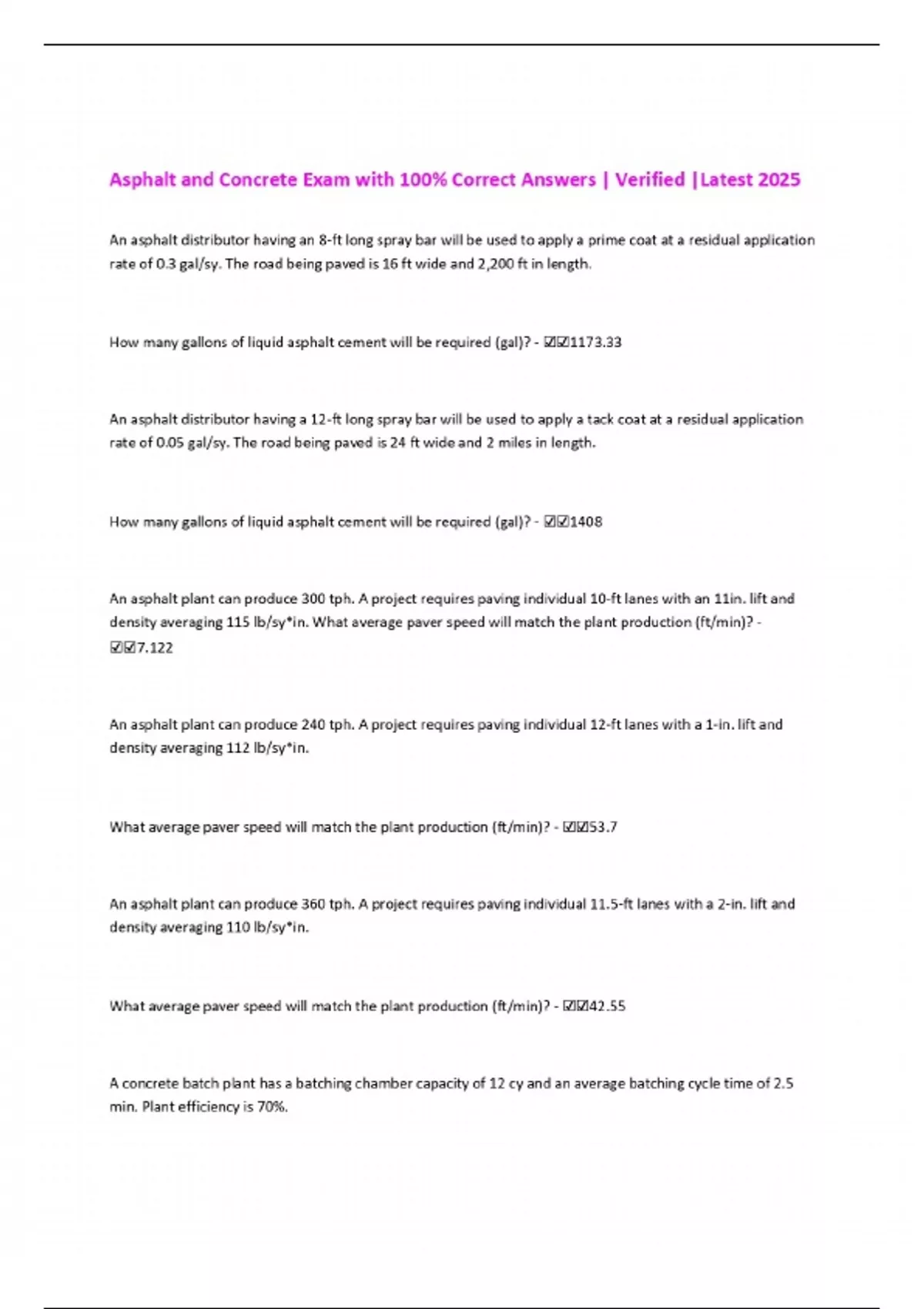 Asphalt and Concrete Exam with 100% Correct Answers | Verified |Latest 2025