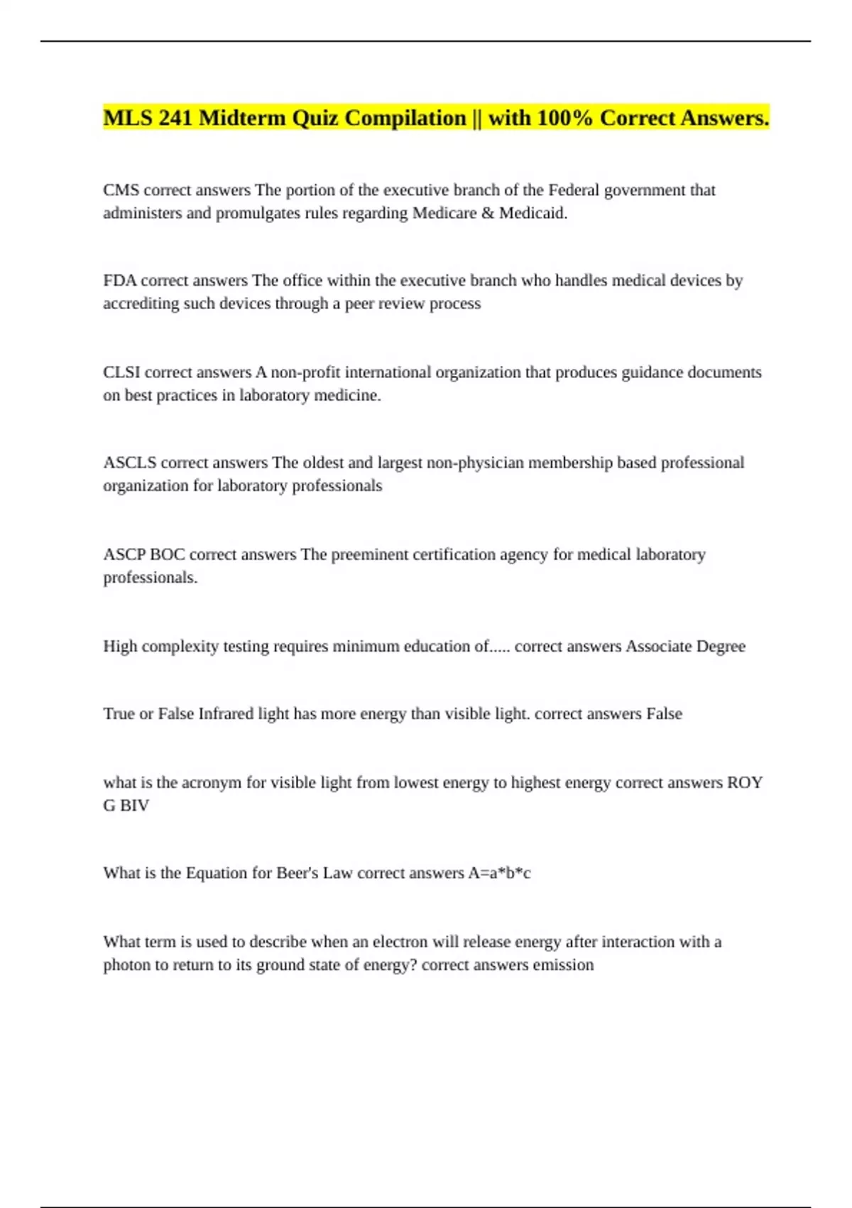 ASCP BOC correct answers The preeminent certification agency for medical laboratory