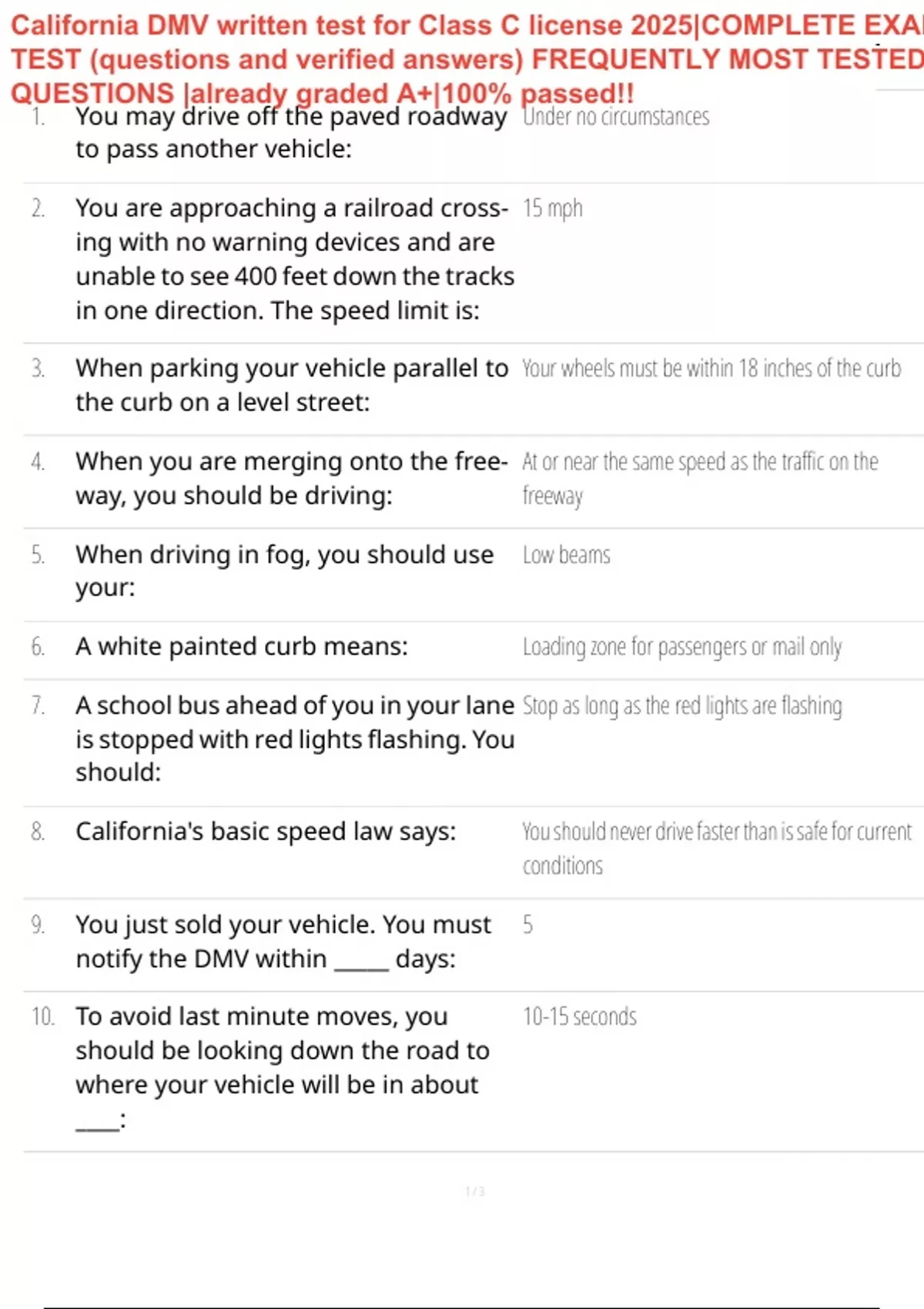 California DMV written test for Class C license 2025|COMPLETE EXAM TEST (questions and verified answers) FREQUENTLY MOST TESTED QUESTIONS |already graded A+|100% passed!!