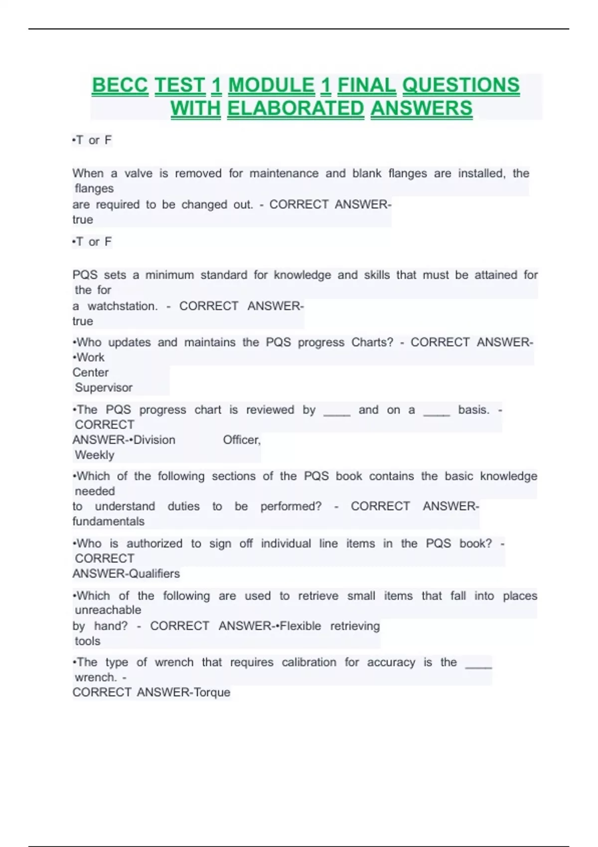 CORRECT xANSWER-Torque
