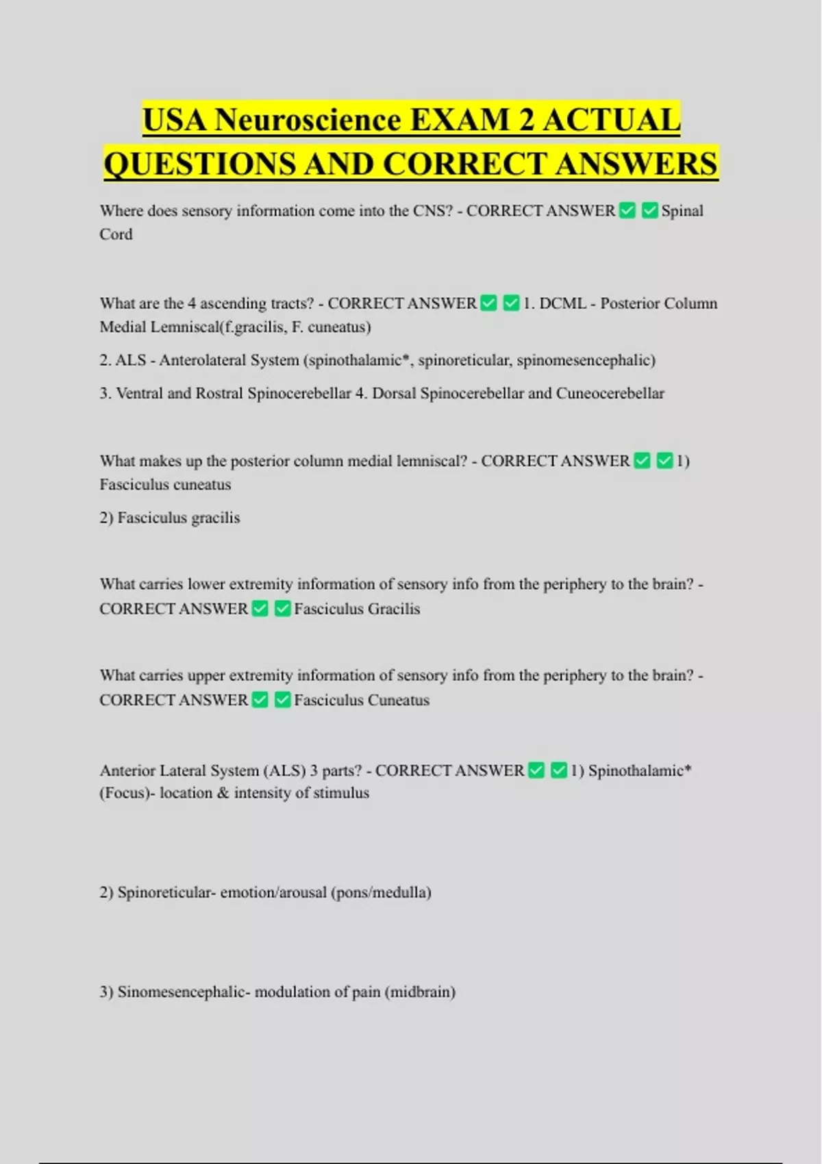 CORRECT ANSWER Fasciculus Cuneatus