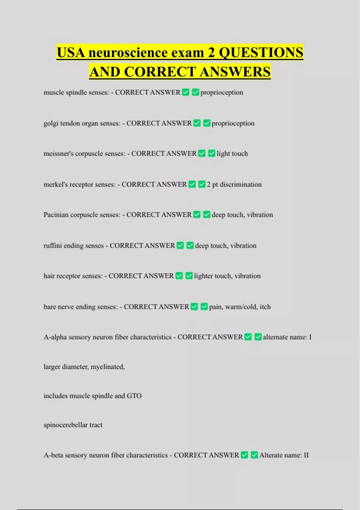 golgi tendon organ senses: - CORRECT ANSWER proprioception
