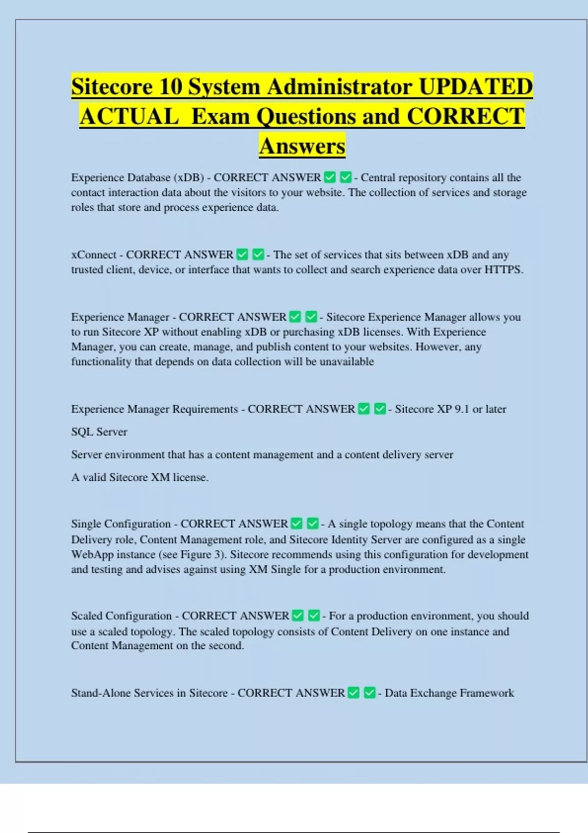 Sitecore 10 System Administrator UPDATED ACTUAL Exam Questions and CORRECT Answers