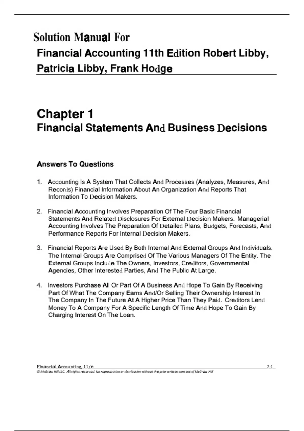 Solution Manual For Financial Accounting 11th Edition Robert Libby, Patricia Libby, Frank Hodge