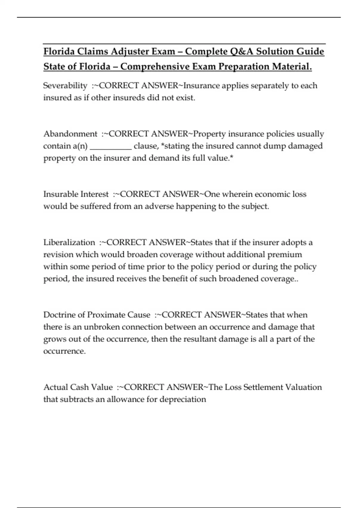 Liberalization :~CORRECT ANSWER~States that if the insurer adopts a