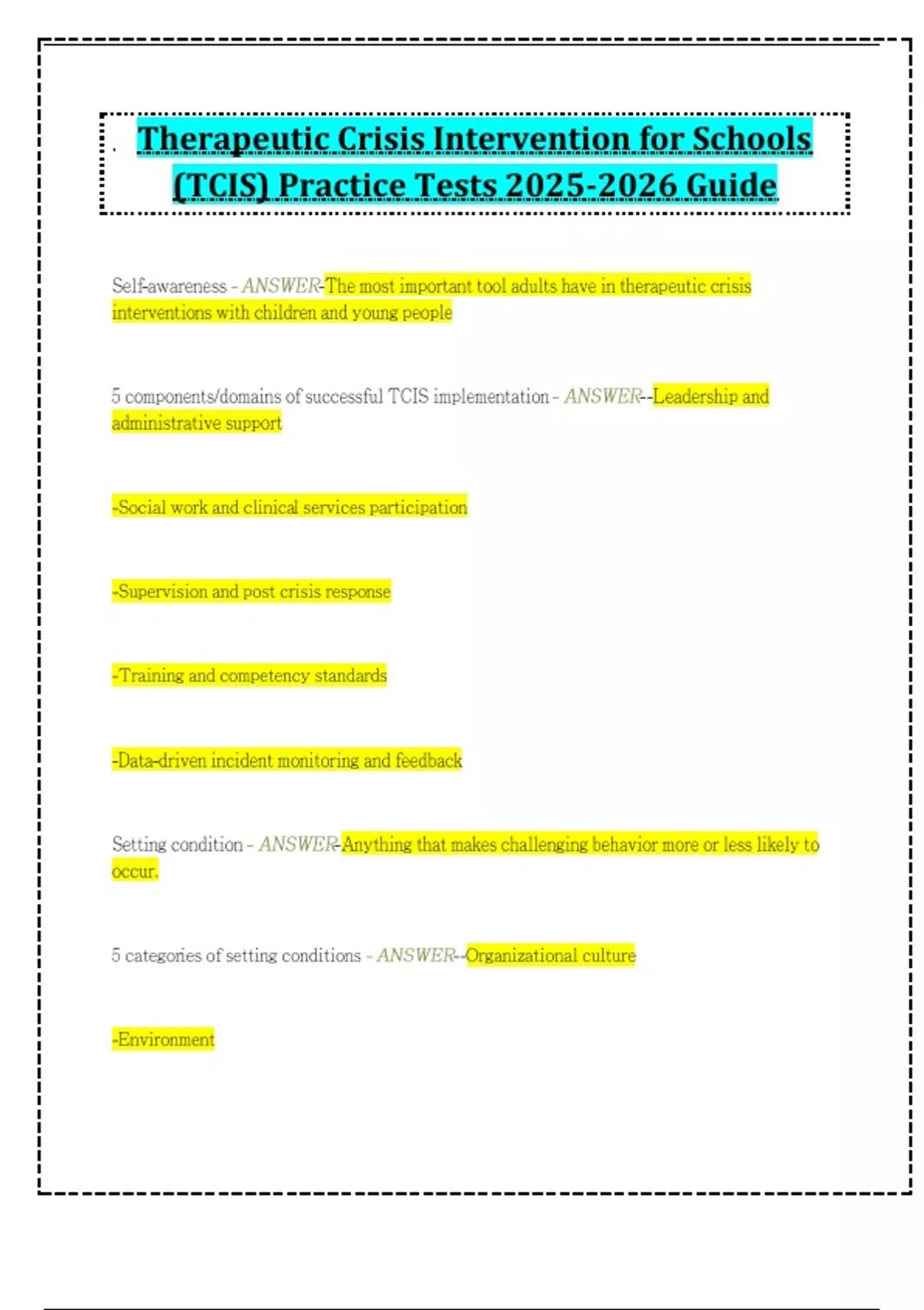 Therapeutic Crisis Intervention for Schools (TCIS) Practice Tests Guide