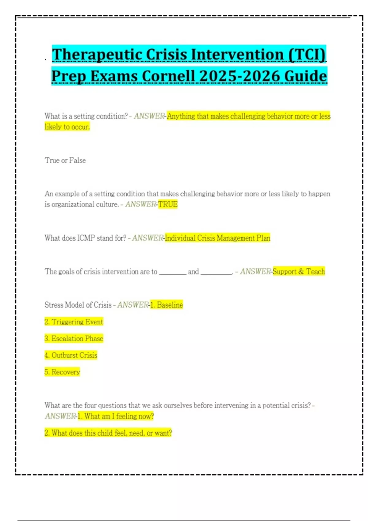 Therapeutic Crisis Intervention (TCI) Prep Exams Cornell Guide