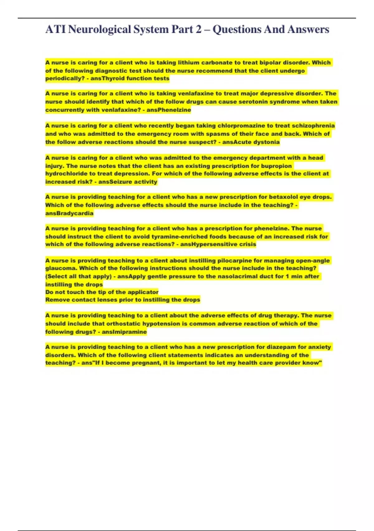 ATI Neurological System Part 2 – Questions And Answers.pdf