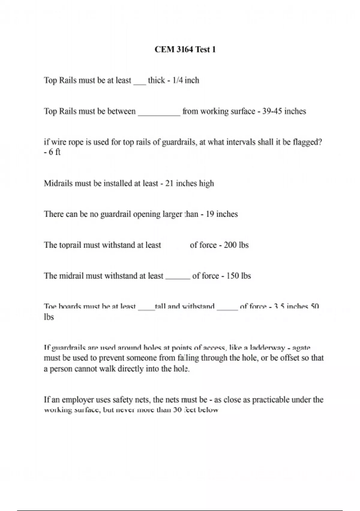 Each net must have a border rope with a minimum - strength of 5,000 lbs The safety net must absorb the force of - a 400-pound bag of sand droppingon to the net Items in a safety that could be dangerous - must be removed as soon aspossible Three major components of personal fall arrest systems - -The anchor and connector -The connecting device, which is a lanyard or a retractable lifeline, with snap hooks -The full-body harness Body belts cannot be used for - Fall arresting service Your personal fall arrest system must be inspected for damage - before each time it's worn A personal fall arrest system should be removed from service if - There are defects or somebody has taken a fall using the equipment The attachment location of the body harness - must be in the center of your back, near the shoulder level or above your head Vertical lifelines or lanyards must have a minimum breaking strength of - 5000 lbs he webbing, which is the materials used for ropes and straps of lifelines, lanyard andharnesses, must be made of - synthetic fibers