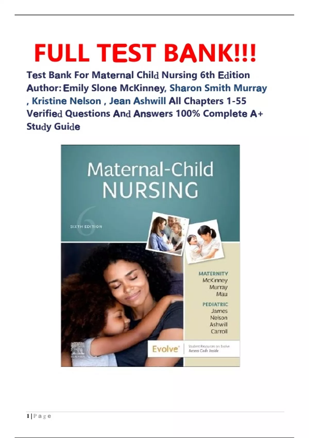Test Bank For Maternal Child Nursing 6th Edition Author: Emily Slone McKinney, Sharon Smith Murray , Kristine Nelson , Jean Ashwill All Chapters 1-55 Verified Questions And Answers 100% Complete A+ Study Guide