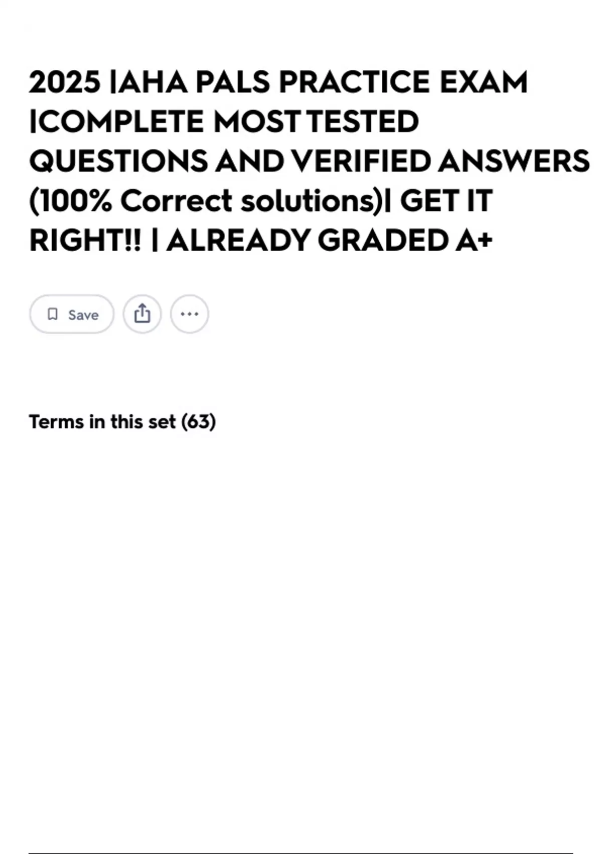 2025 |AHA PALS PRACTICE EXAM |COMPLETE MOST TESTED QUESTIONS AND VERIFIED ANSWERS (100% Correct solutions)| GET IT RIGHT!! | ALREADY GRADED A+
