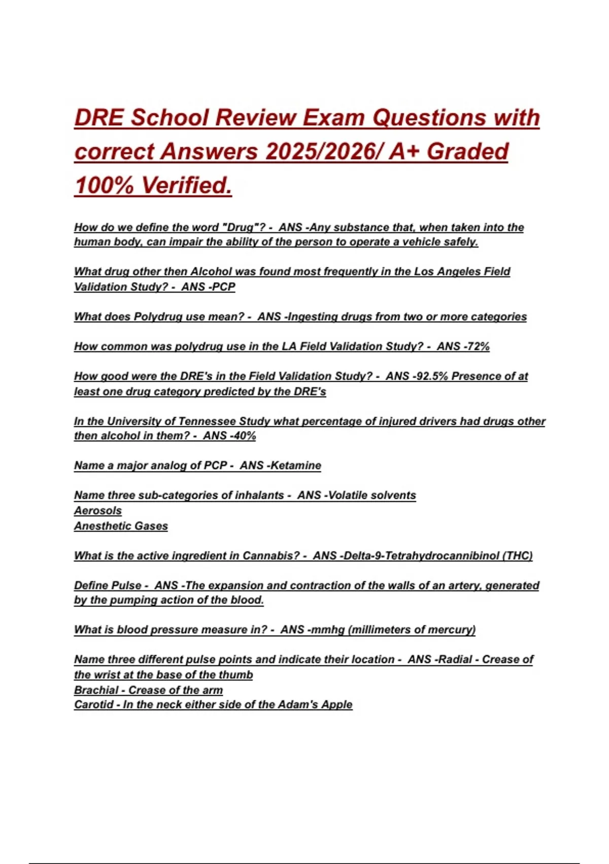 DRE School Review Exam Questions with