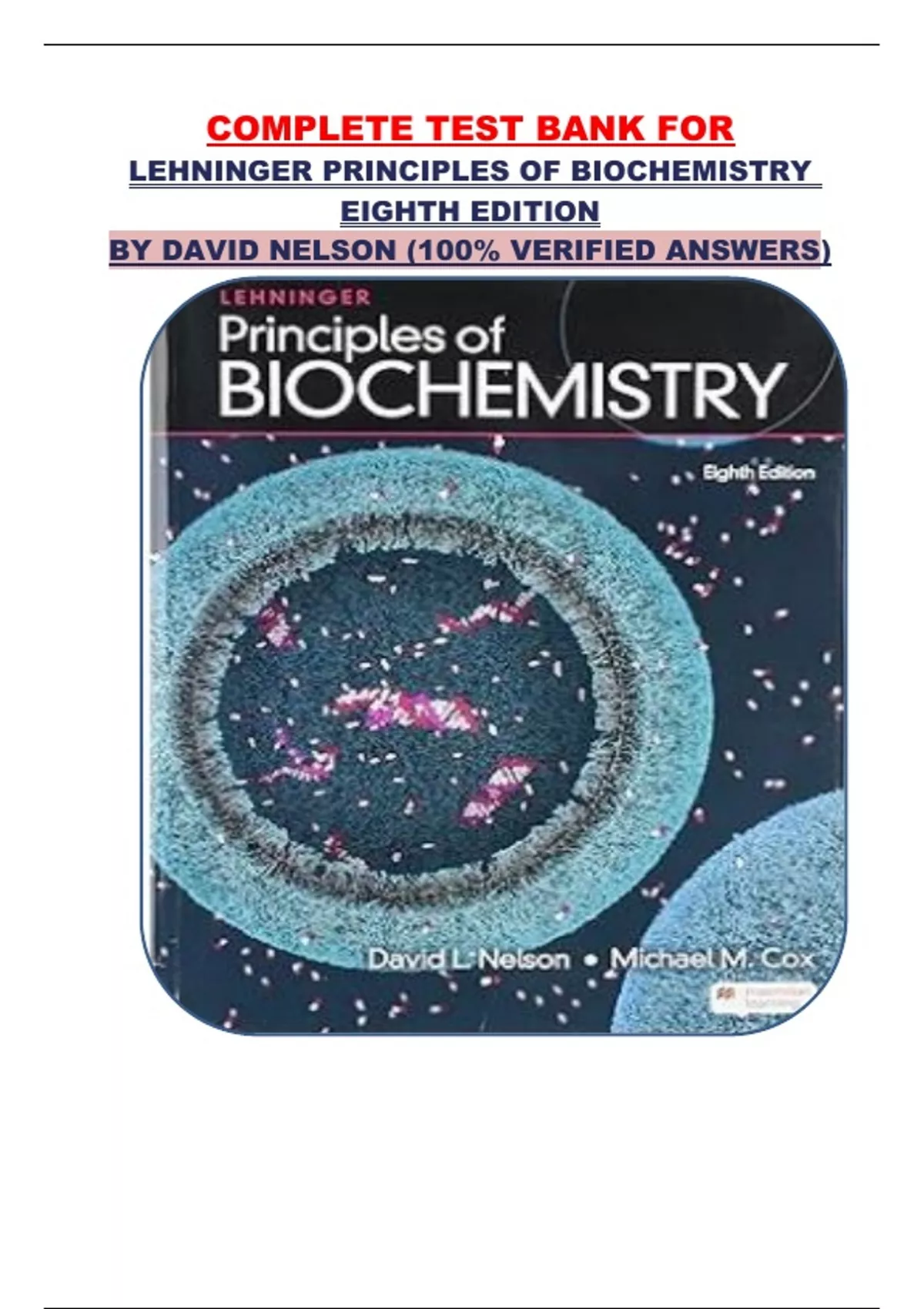TEST BANK FOR LEHNINGER PRINCIPLES OF BIOCHEMISTRY EIGHTH EDITION TEST BANK FOR LEHNINGER PRINCIPLES OF BIOCHEMISTRY EIGHTH EDITION