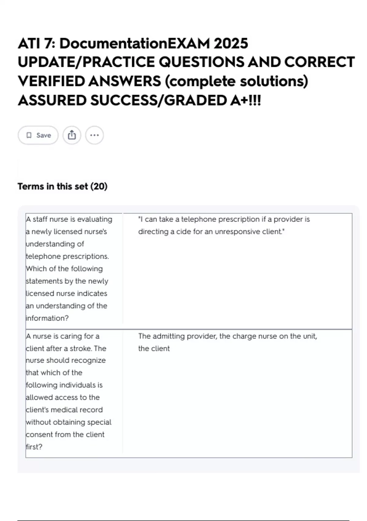 ATI 7: DocumentationEXAM 2025 UPDATE/PRACTICE QUESTIONS AND CORRECT VERIFIED ANSWERS (complete solutions) ASSURED SUCCESS/GRADED A+!!!