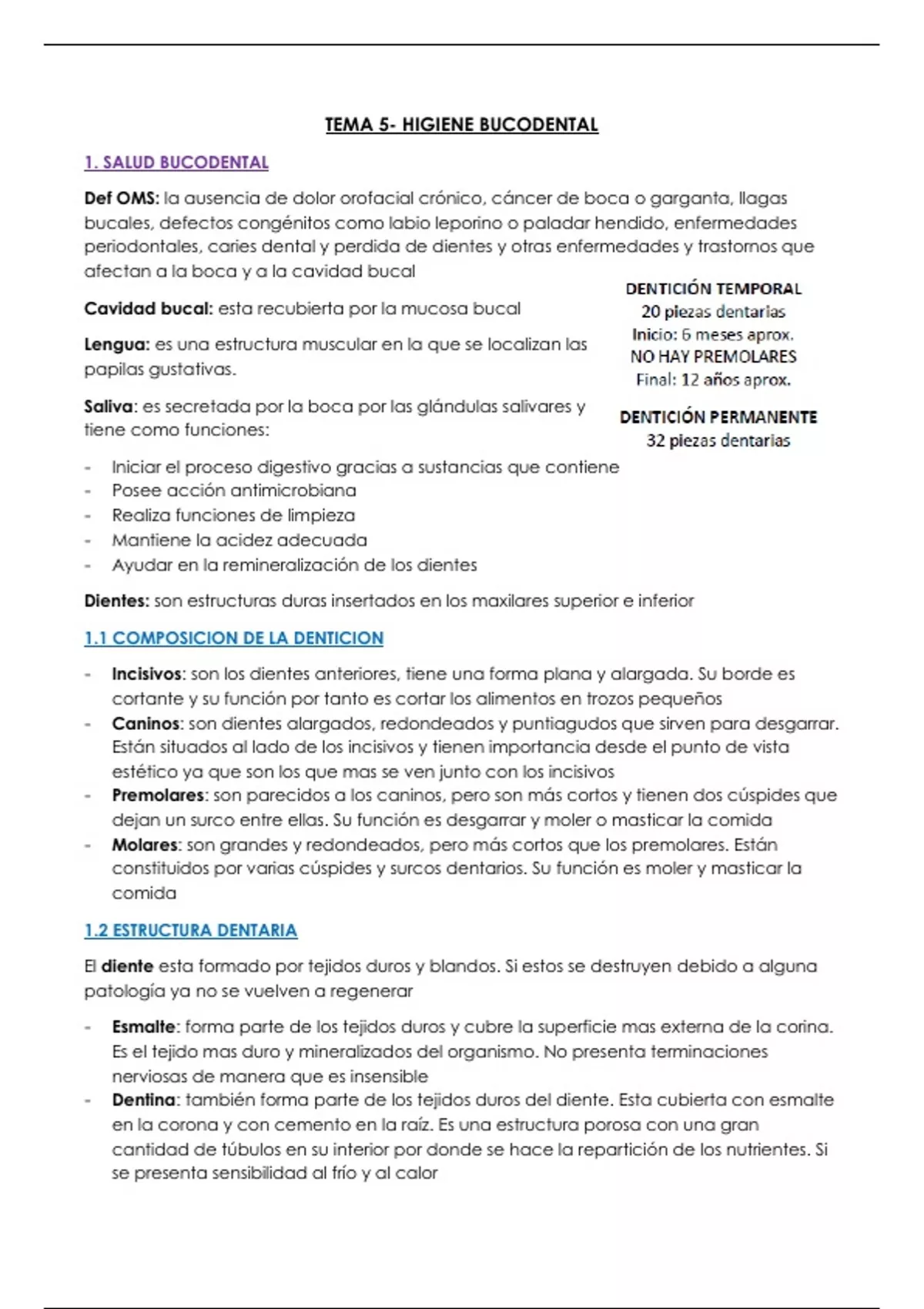1.2 ESTRUCTURA DENTARIA