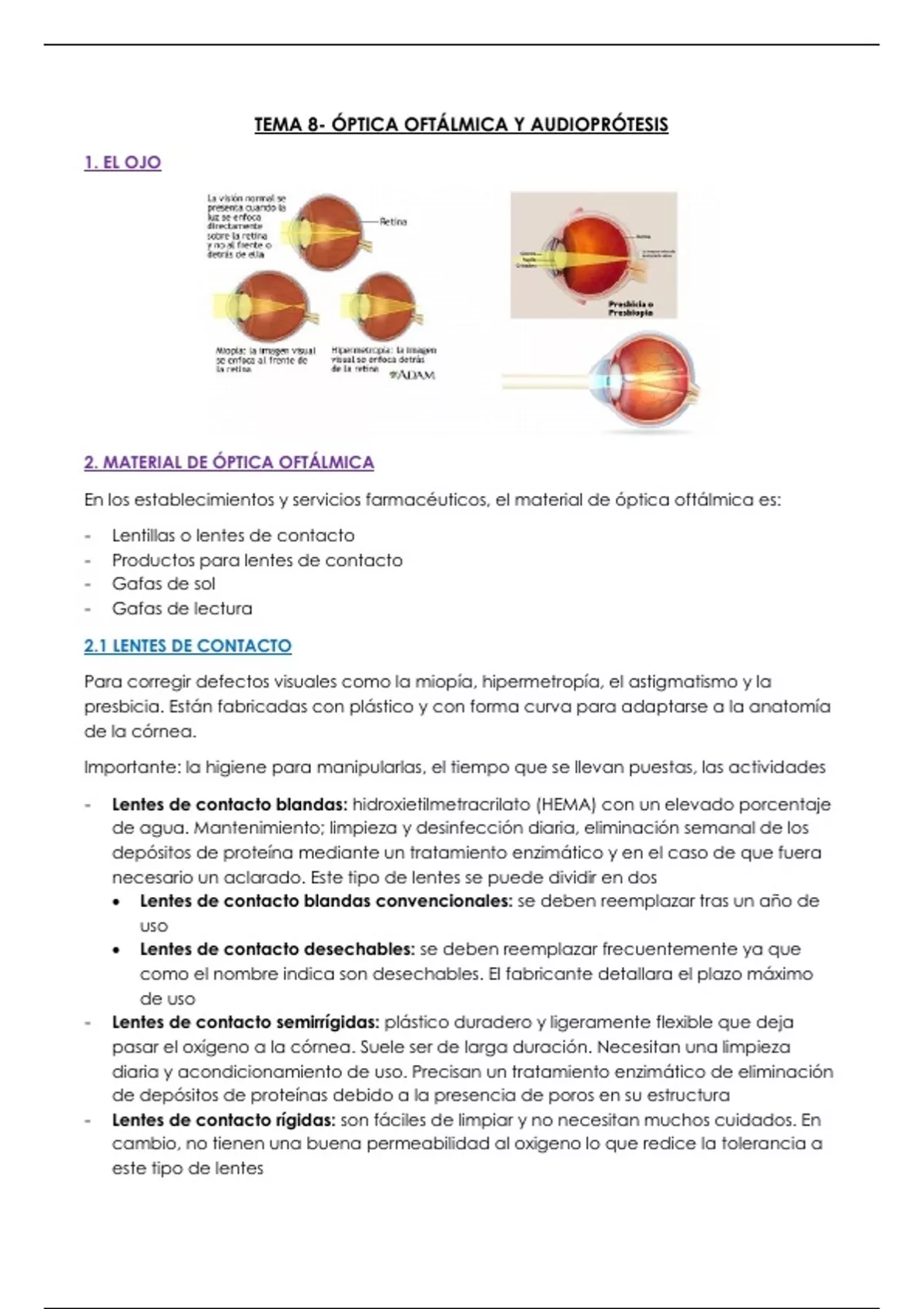 TEMA 8- ÓPTICA OFTÁLMICA Y AUDIOPRÓTESIS