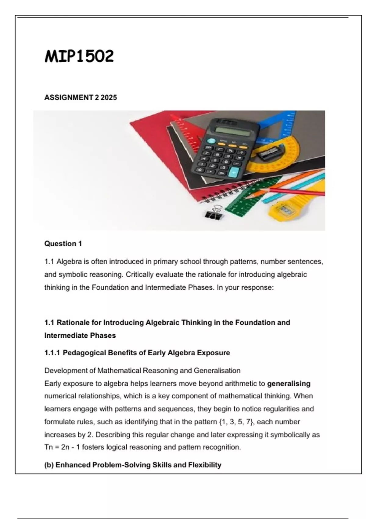 1.1 Rationale for Introducing Algebraic Thinking in the Foundation and