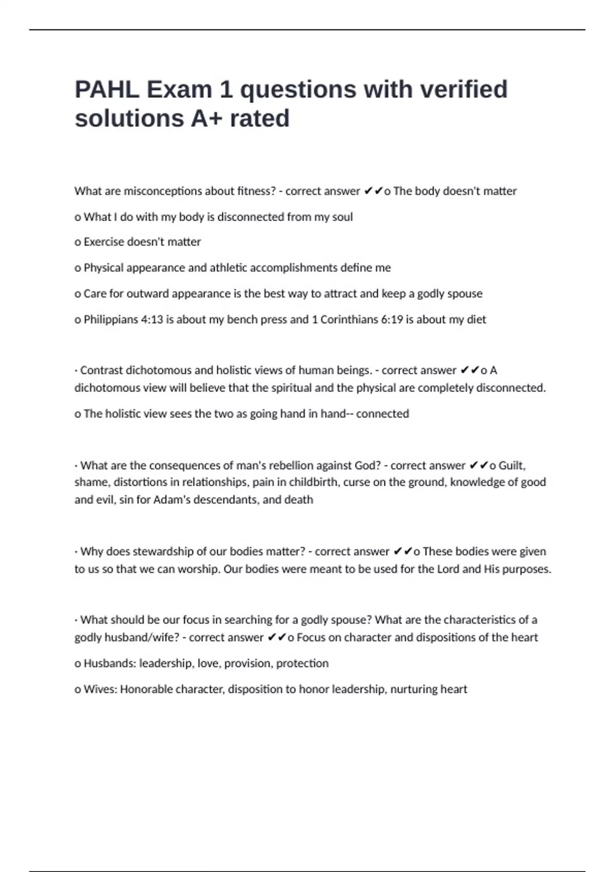 · Contrast dichotomous and holistic views of human beings. - correct answer ✔✔o A