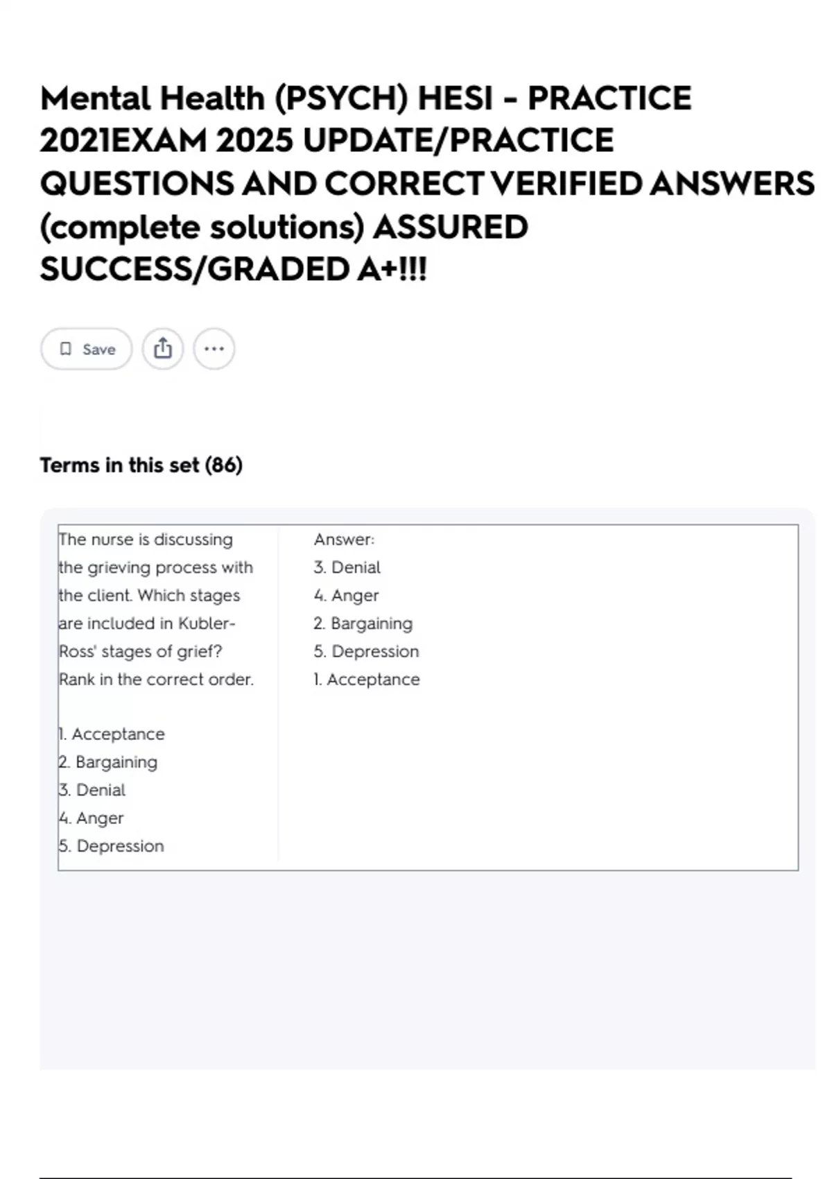 Mental Health (PSYCH) HESI - PRACTICE 2021EXAM 2025 UPDATE/PRACTICE QUESTIONS AND CORRECT VERIFIED ANSWERS (complete solutions) ASSURED SUCCESS/GRADED A+!!!