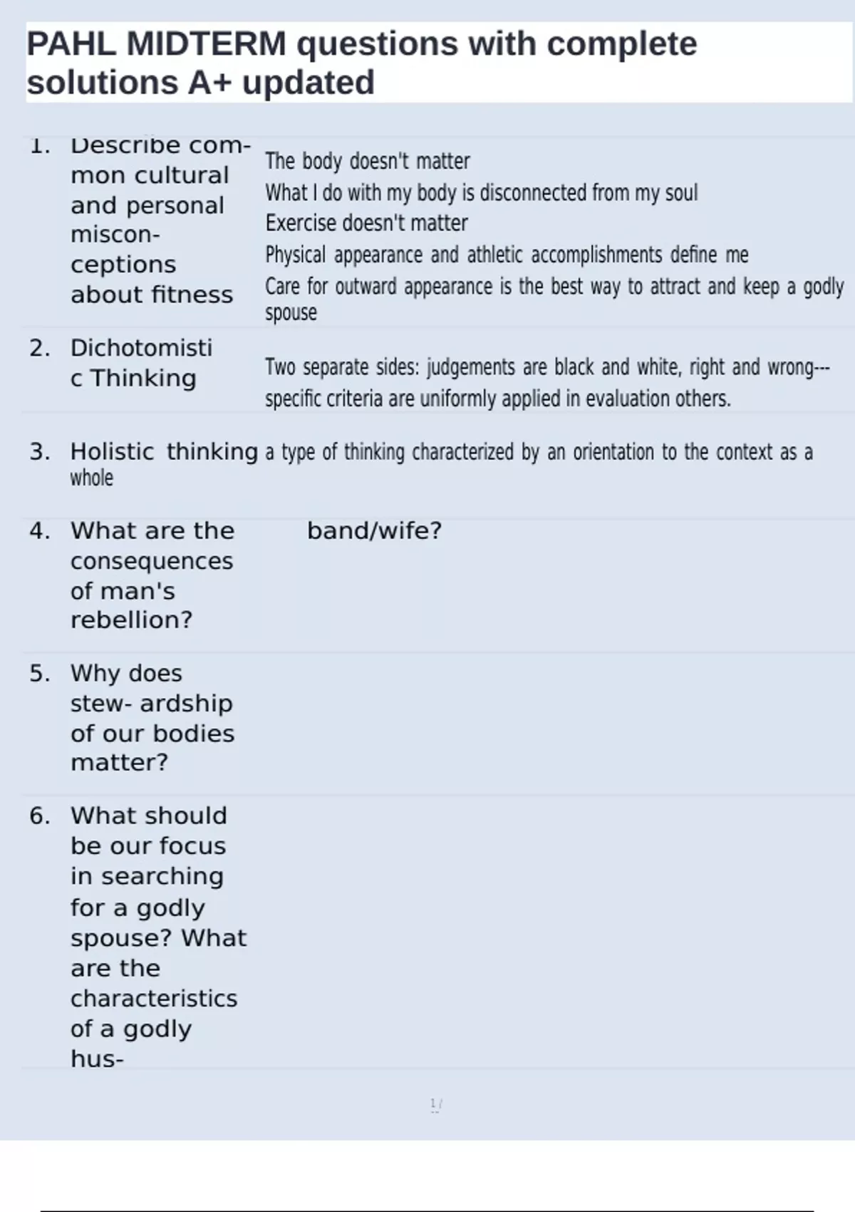 , PAHL MIDTERM questions with complete