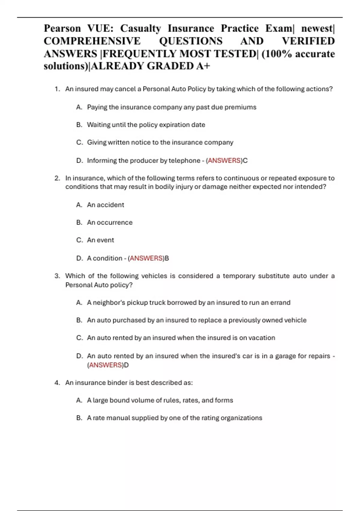 , Pearson VUE: Casualty Insurance Practice Exam| newest|