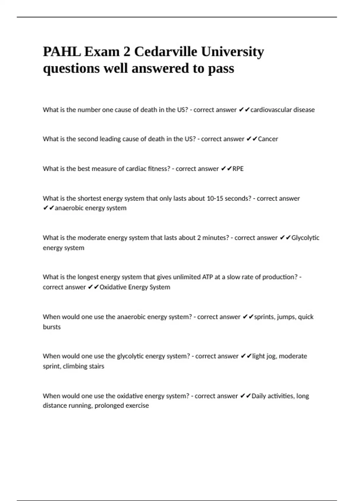 PAHL Exam 2 Cedarville University questions well answered to pass