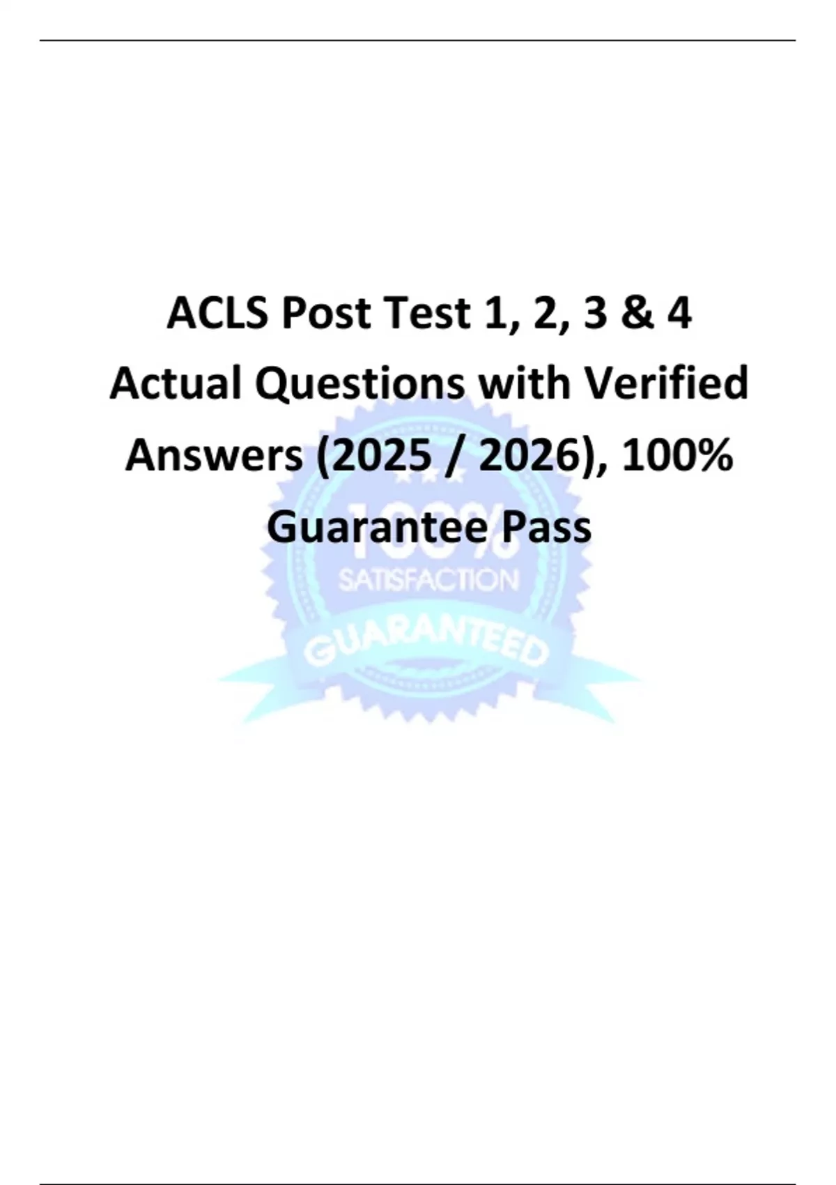 ACLS Post Test 1, 2, 3 & 4 Actual Questions with Verified Answers (2025 / 2026), 100% Guarantee Pass