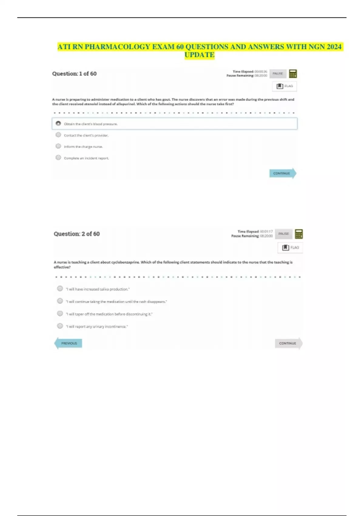 ATI RN PHARMACOLOGY EXAM 60 QUESTIONS AND ANSWERS WITH NGN LATEST