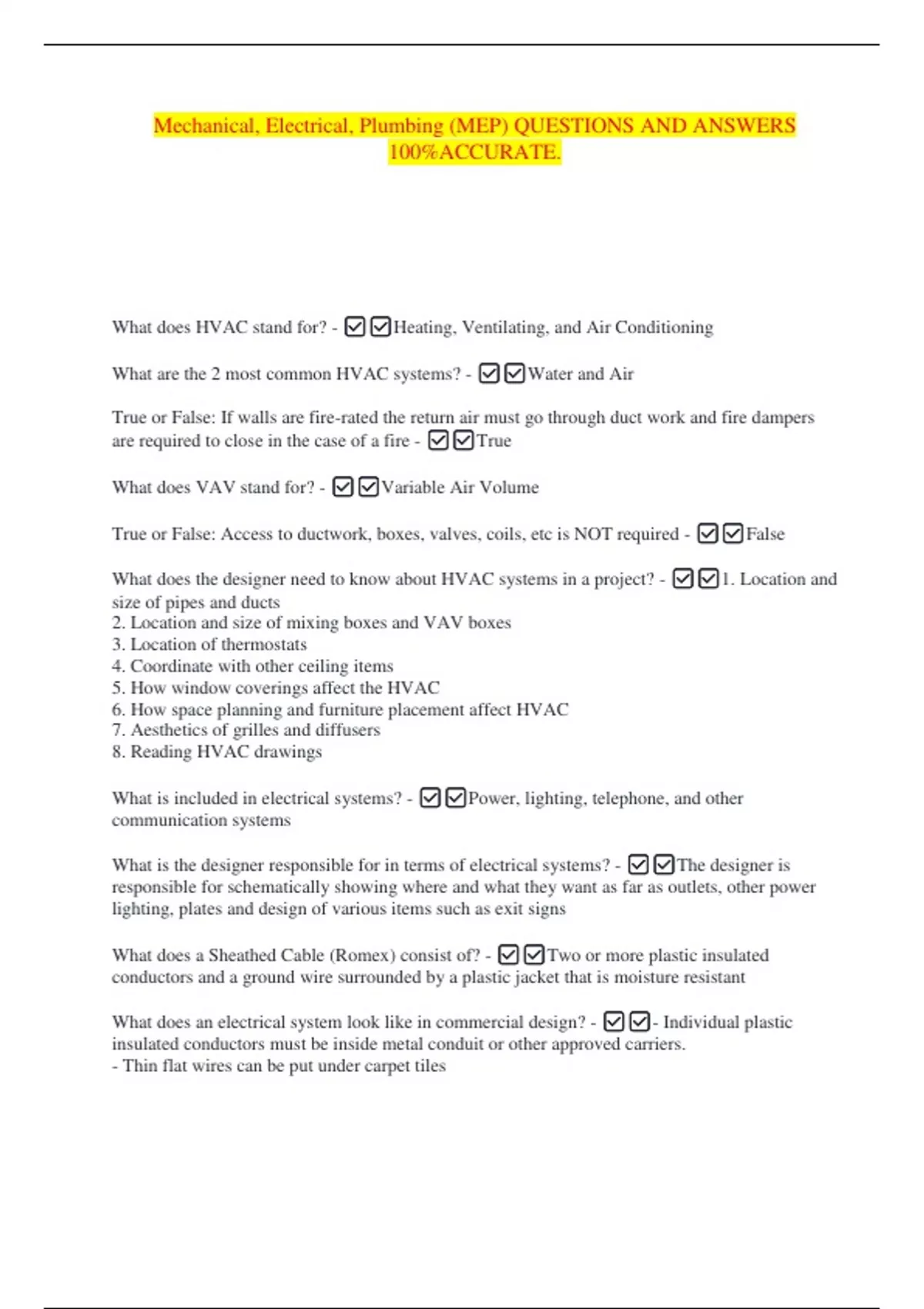 Mechanical, Electrical, Plumbing (MEP) QUESTIONS AND ANSWERS