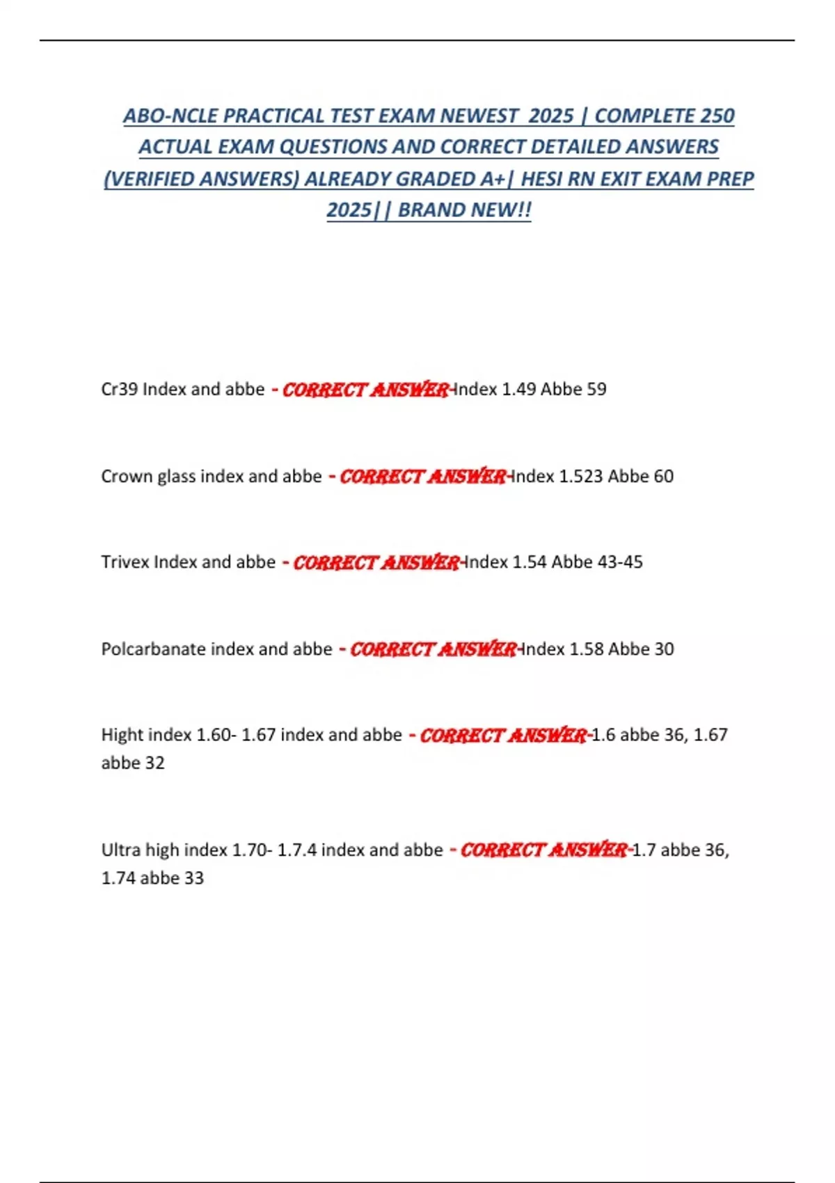 Cr39 Index and abbe - CORRECT ANSWER-Index 1.49 Abbe 59