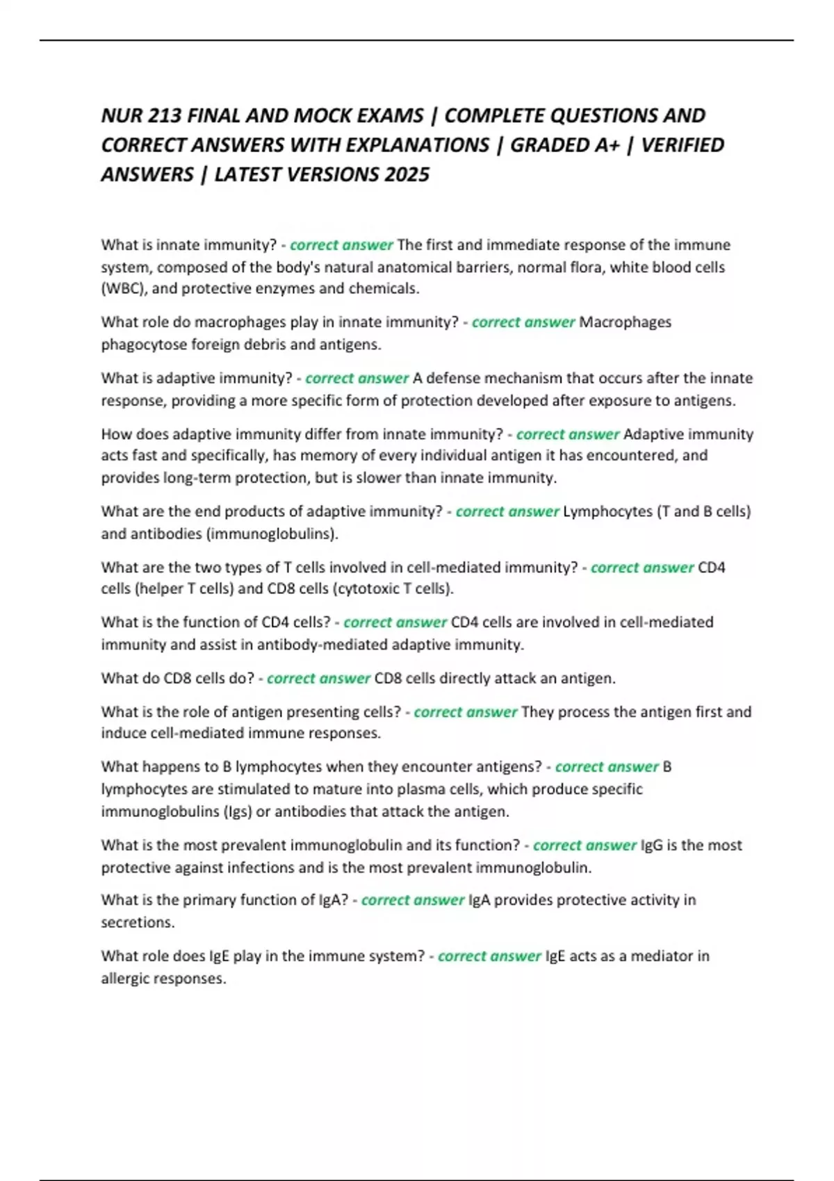What is adaptive immunity? - correct answer A defense mechanism that occurs after the innate