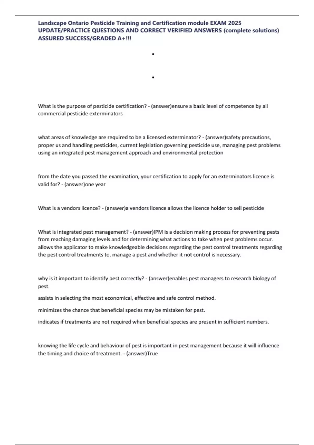 Landscape Ontario Pesticide Training and Certification module EXAM 2025