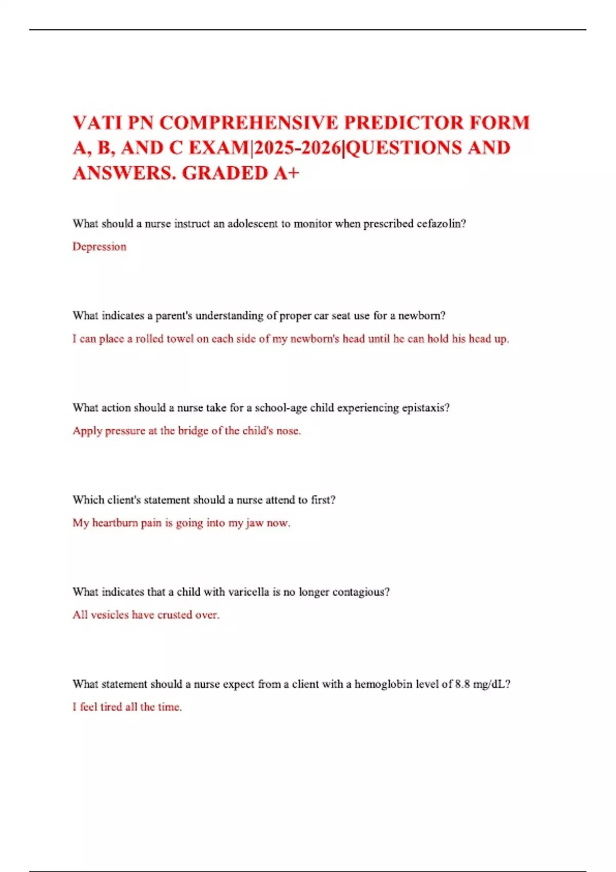 VATI PN COMPREHENSIVE PREDICTOR FORM A, B, AND C EXAM||QUESTIONS AND ANSWERS. GRADED A+