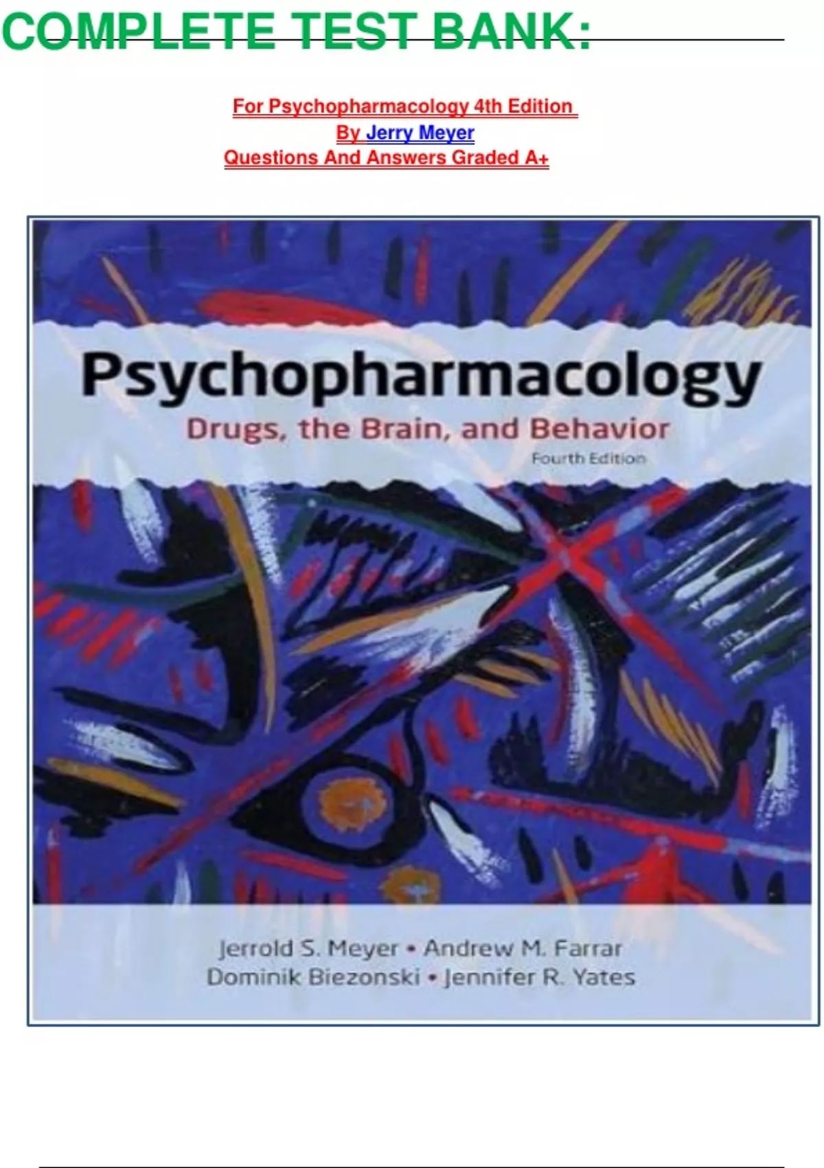 COMPLETE TEST BANK: For Psychopharmacology 4th Edition By Jerry Meyer Questions And Answers Graded A+