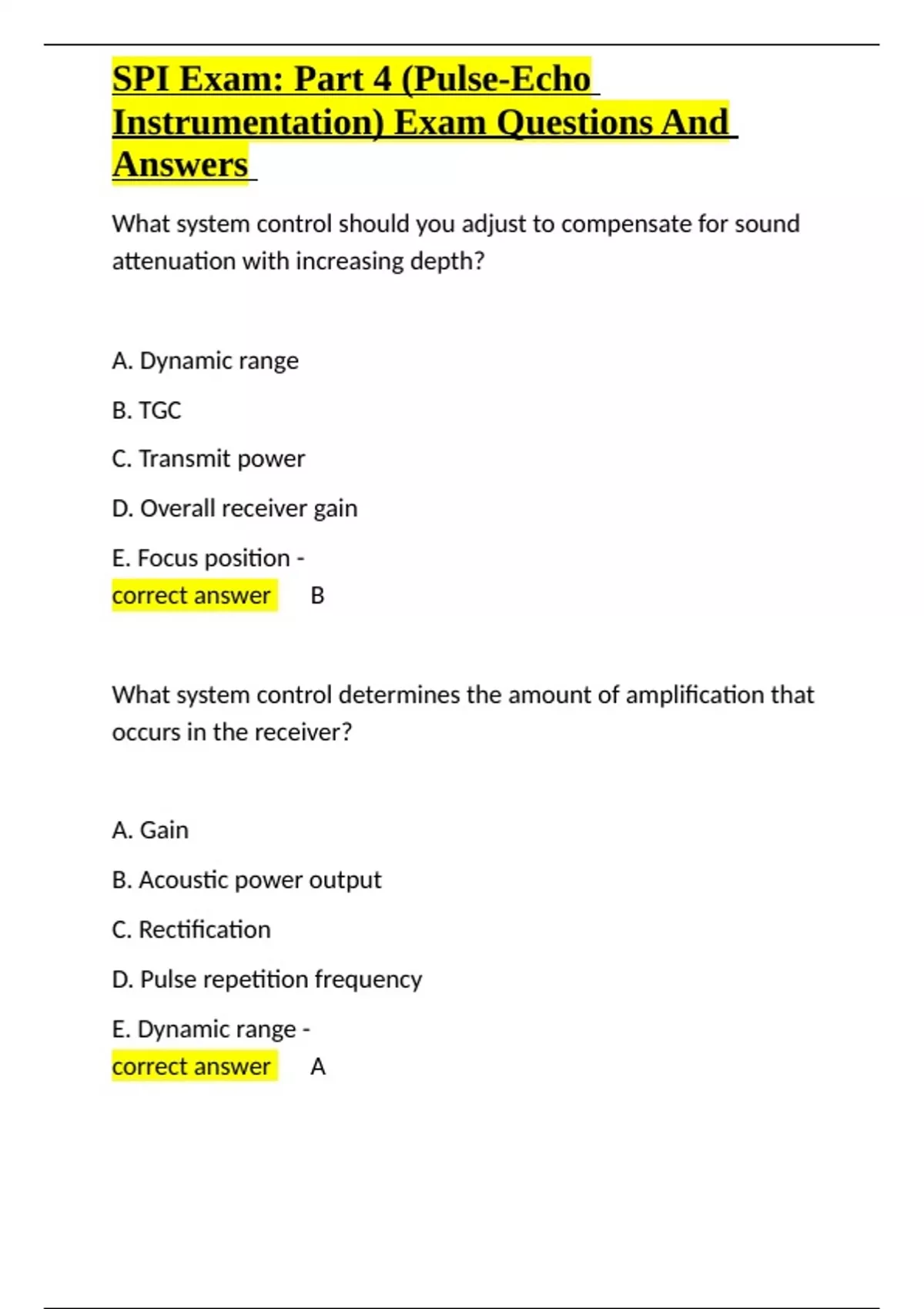 , SPI Exam: Part 4 (Pulse-Echo