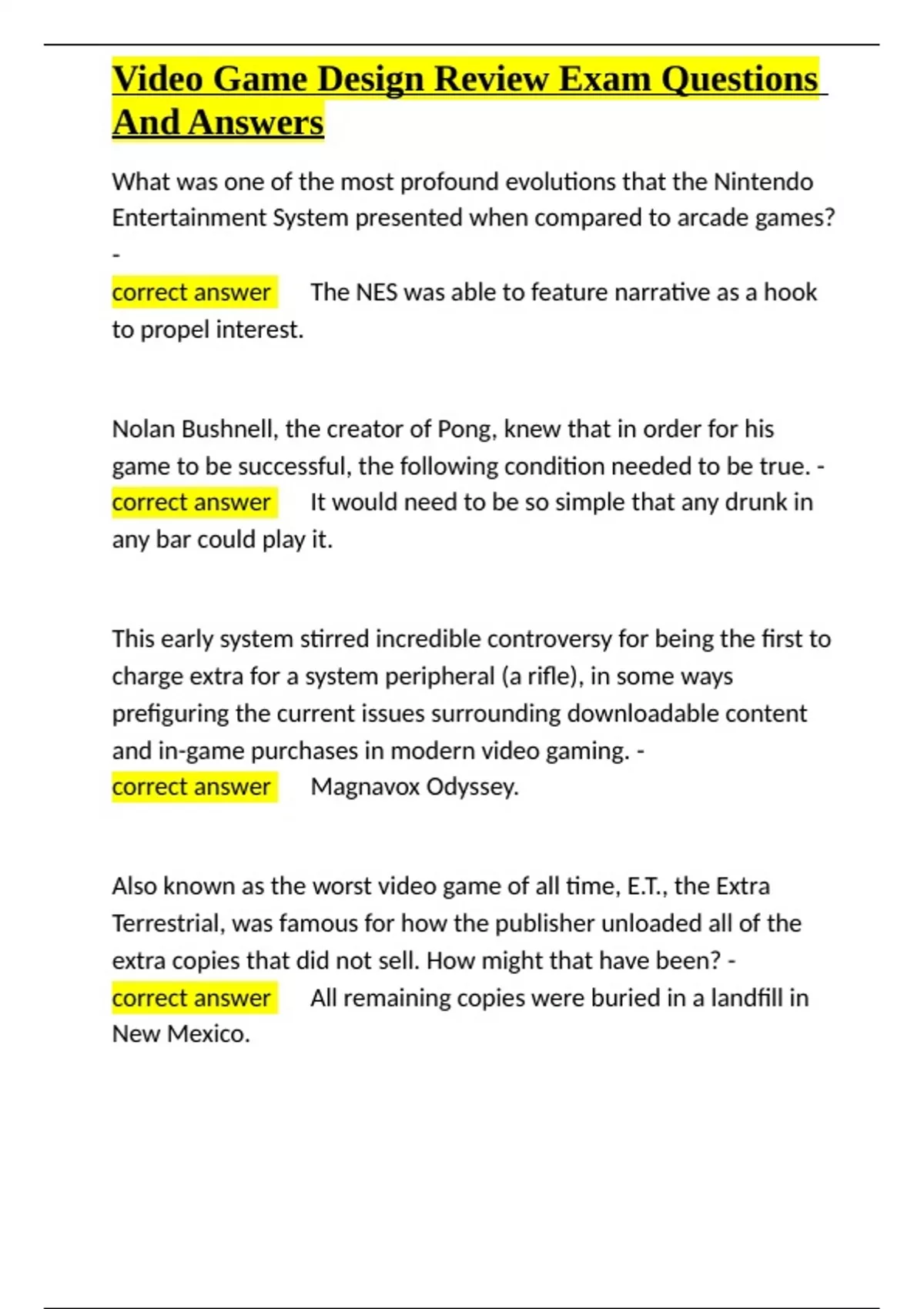 , Video Game Design Review Exam Questions