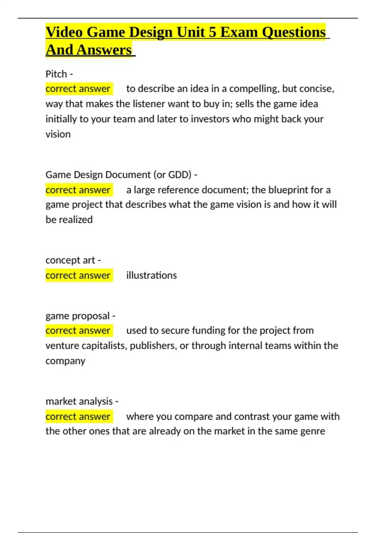 Video Game Design Unit 5 Exam Questions And Answers.docx