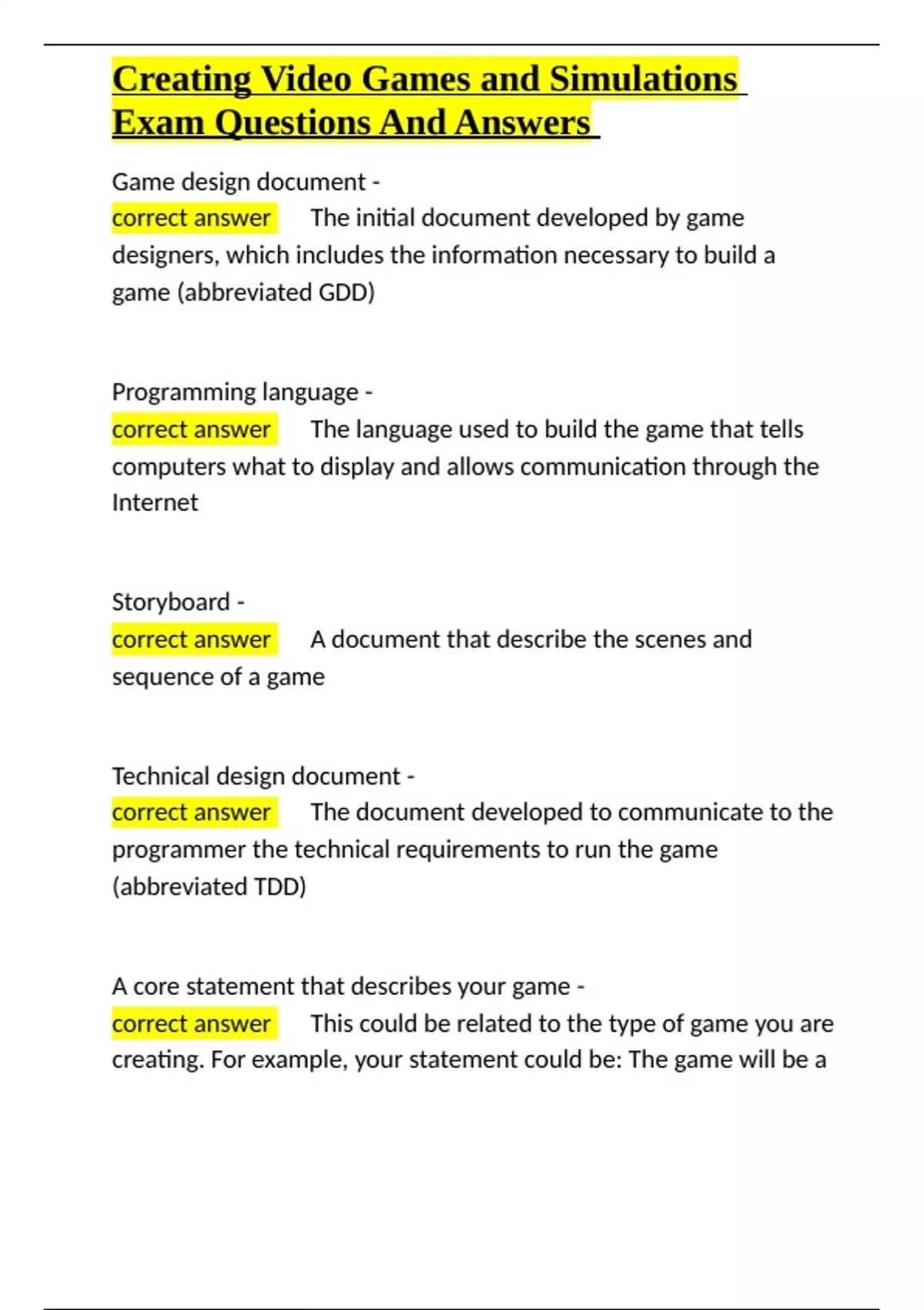 correct answer ✅The initial document developed by game
