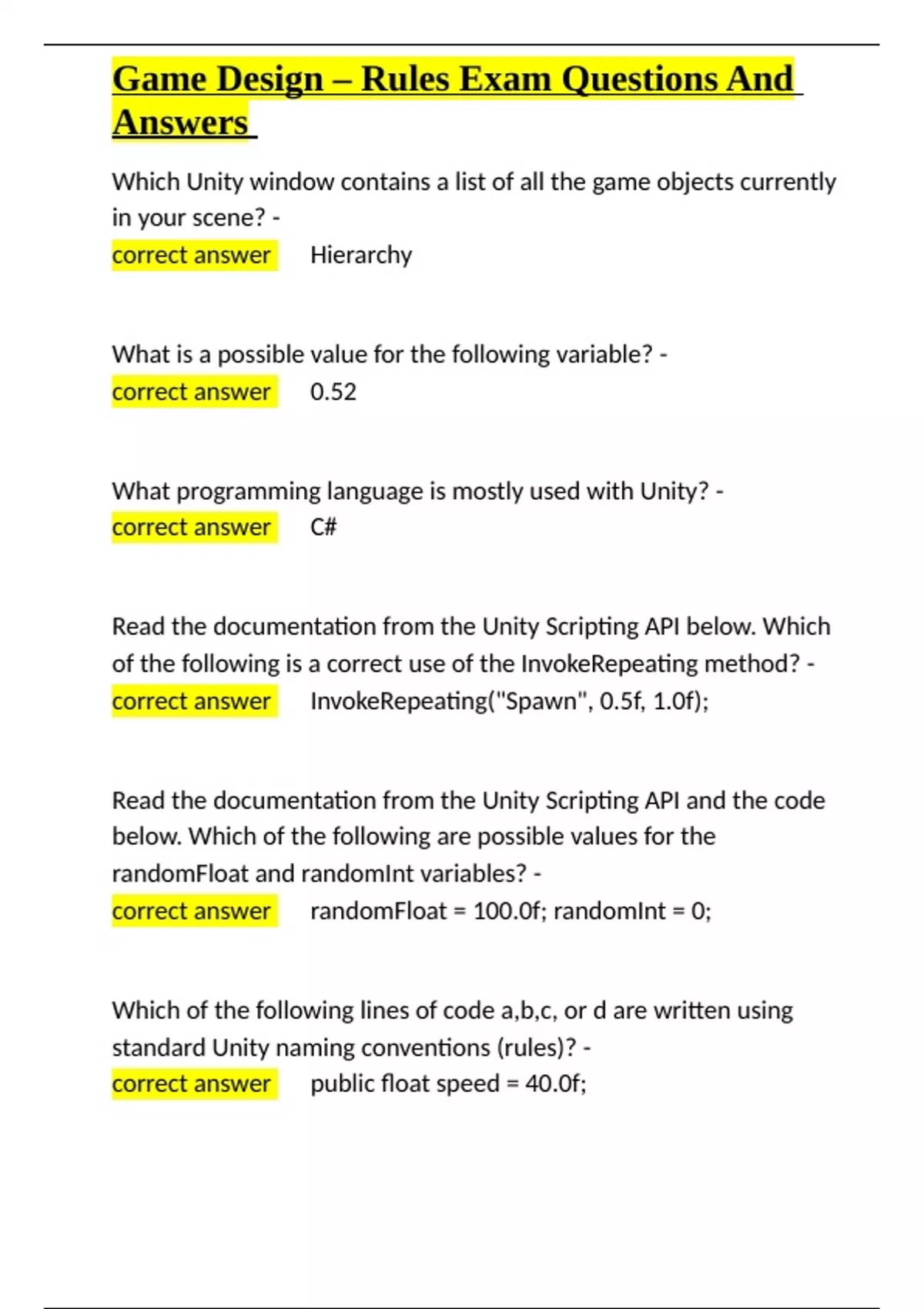 Game Design – Rules Exam Questions And Answers.docx
