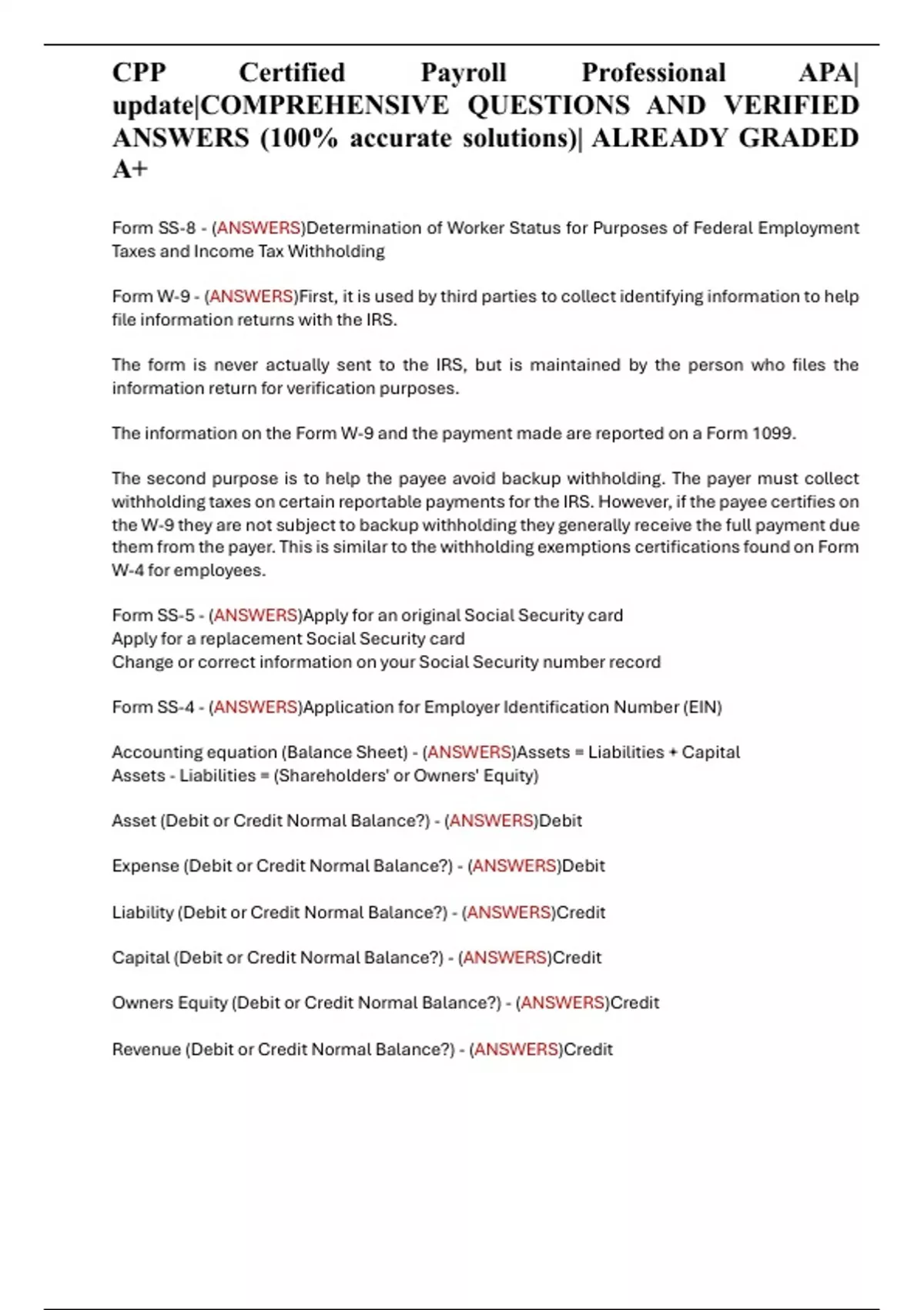 CPP Certified Payroll Professional APA| update|COMPREHENSIVE QUESTIONS AND VERIFIED ANSWERS (100% accurate solutions)| ALREADY GRADED A+