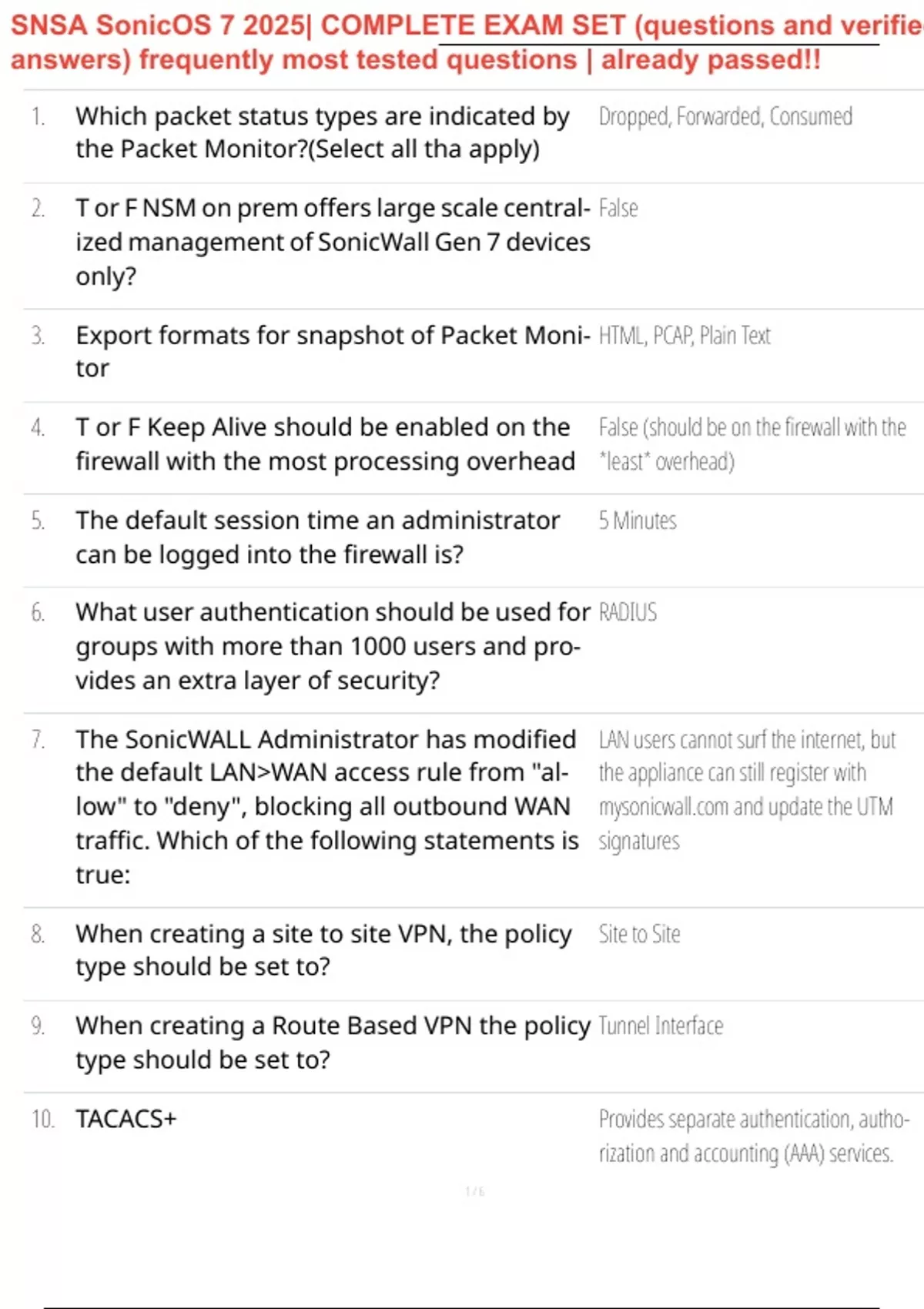 SNSA SonicOS 7 2025| COMPLETE EXAM SET (questions and verified