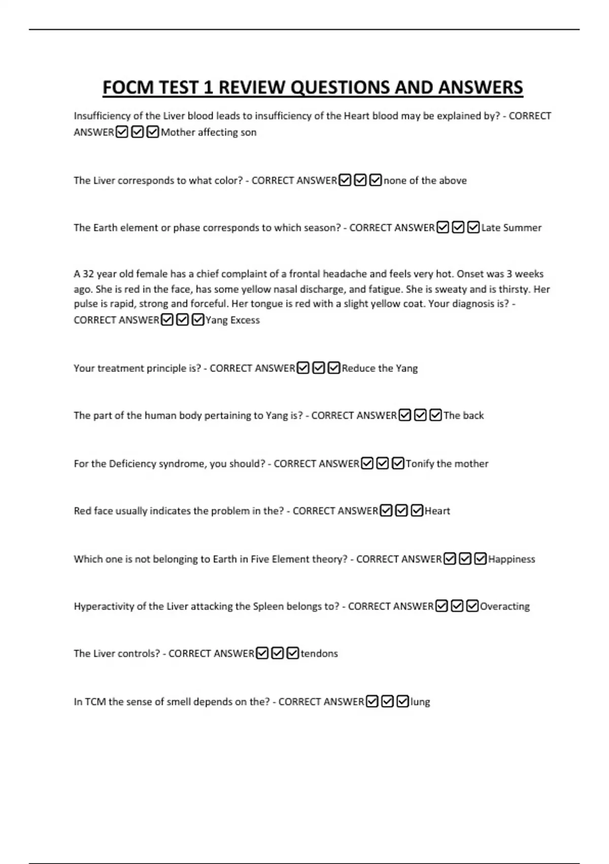 FOCM TEST 1 REVIEW QUESTIONS AND ANSWERS