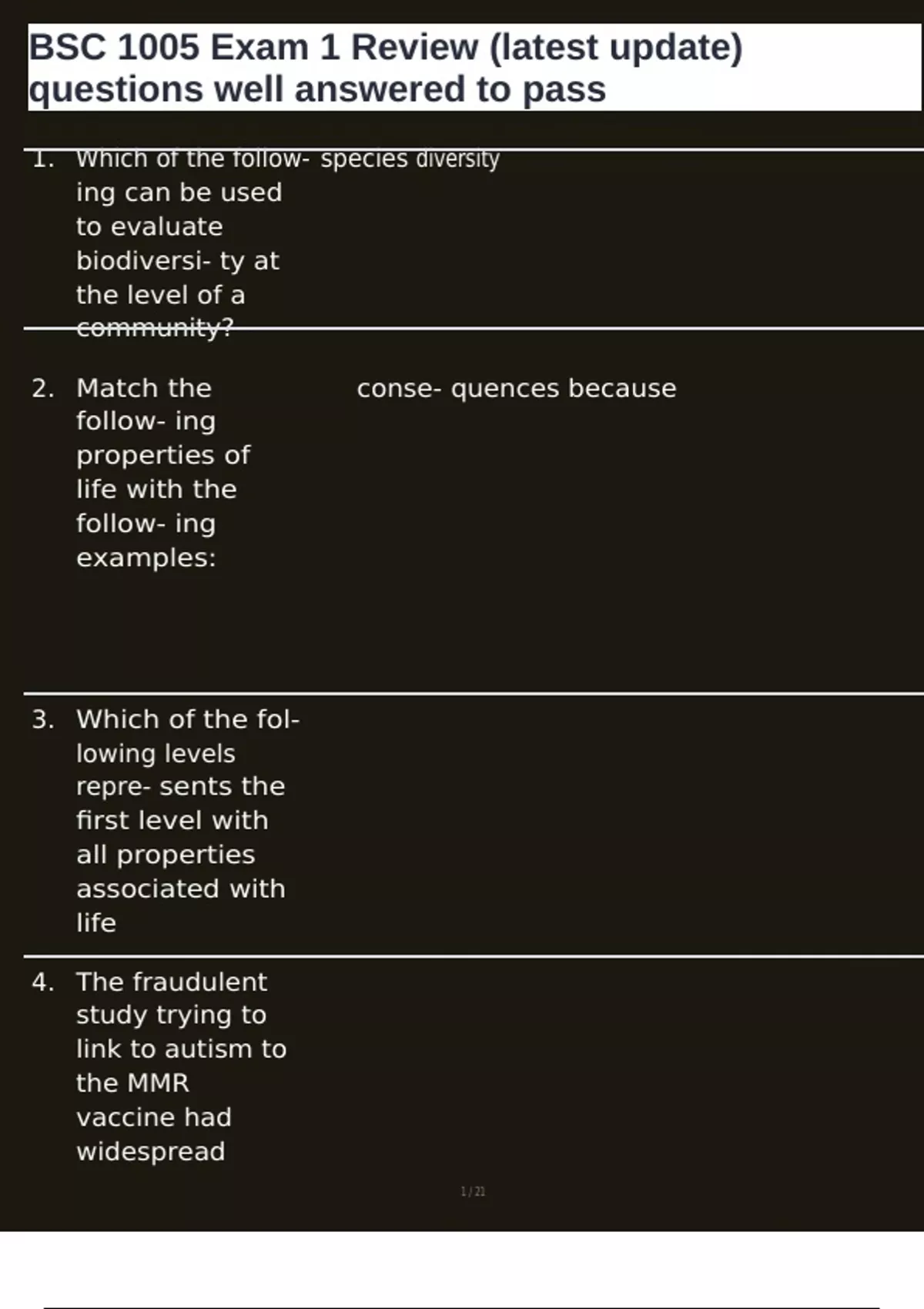 , BSC 1005 Exam 1 Review (latest update)