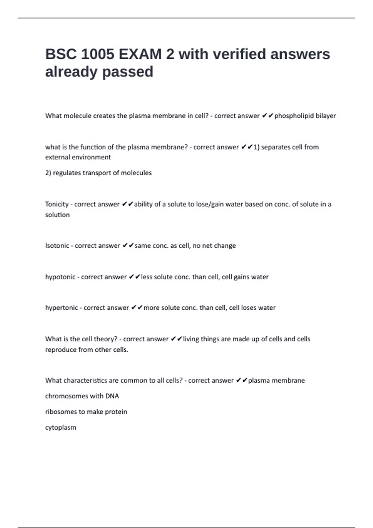 What characteristics are common to all cells? - correct answer ✔✔plasma membrane
