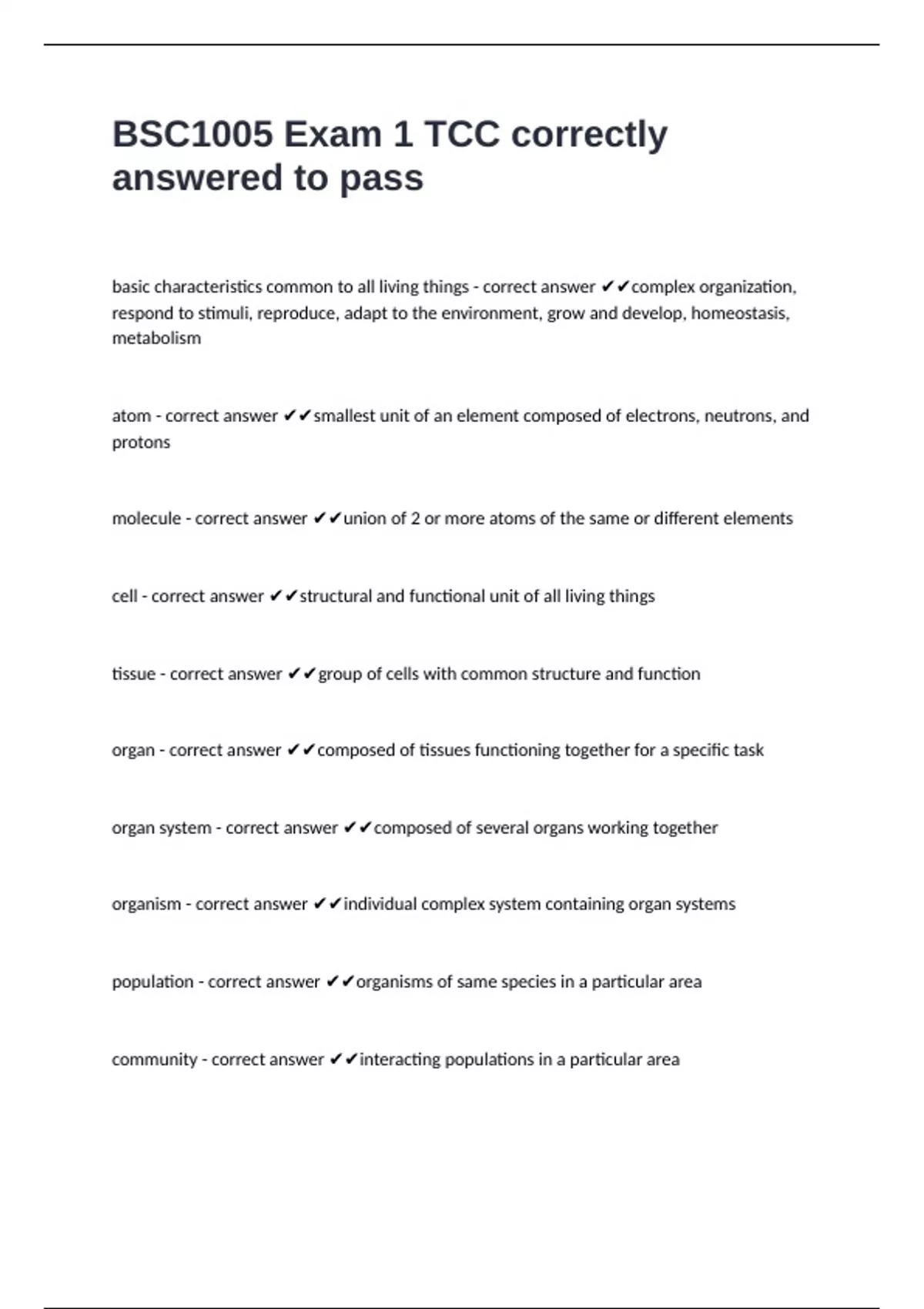 basic characteristics common to all living things - correct answer ✔✔complex organization,
